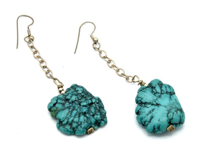COPPIA DI ORECCHINI PENDENTI CON PIETRE DURE E METALLO ARGENTATO lunghezza cm 8