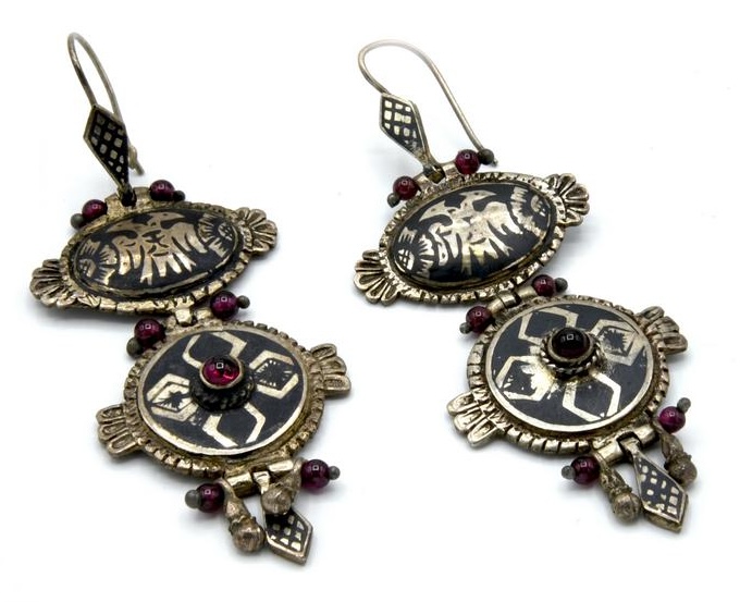 COPPIA DI ORECCHINI PENDENTI IN ARGENTONE DECORATI CON AQUILE BICEFALE