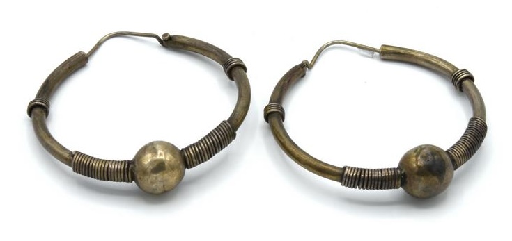 Lot 121 | ORECCHINI A CERCHIO IN ARGENTONE CON SFERA CENTRALE E FILI ATTORCILIATI...