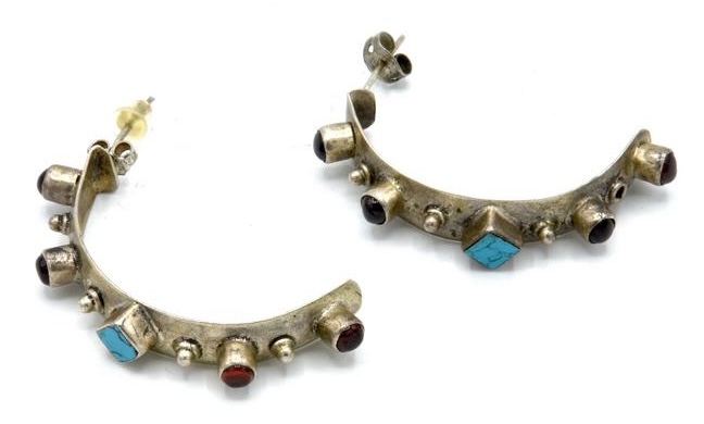 Lot 122 | ORECCHI A MEZZALUNA IN ARGENTONE DECORATI CON TURCHESE E PICCOLE PIETRE DURE...