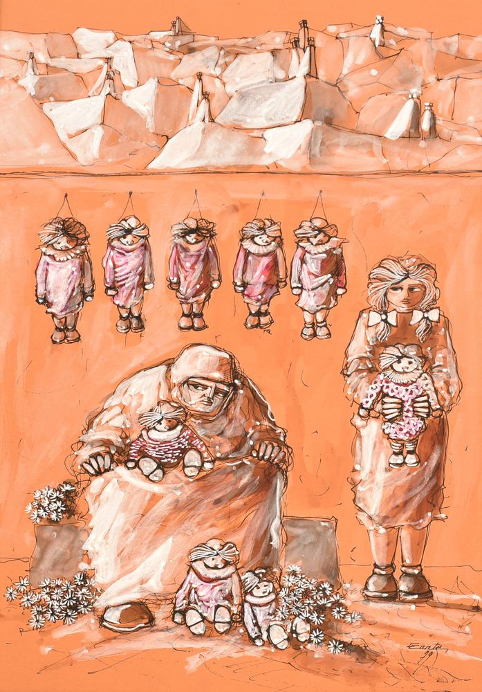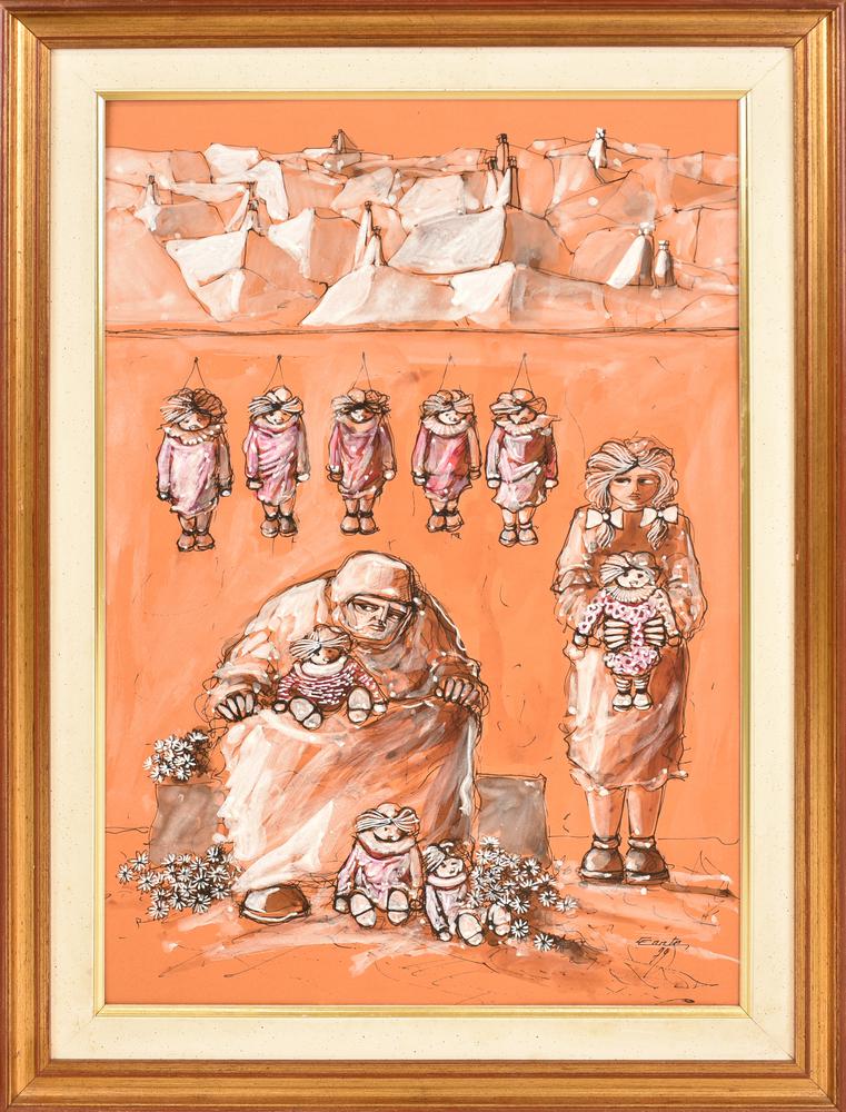 Lot 66 | Ignoto BAMBOLE tecnica mista su carta, cm 40x30 firma e data eseguito nel 1979