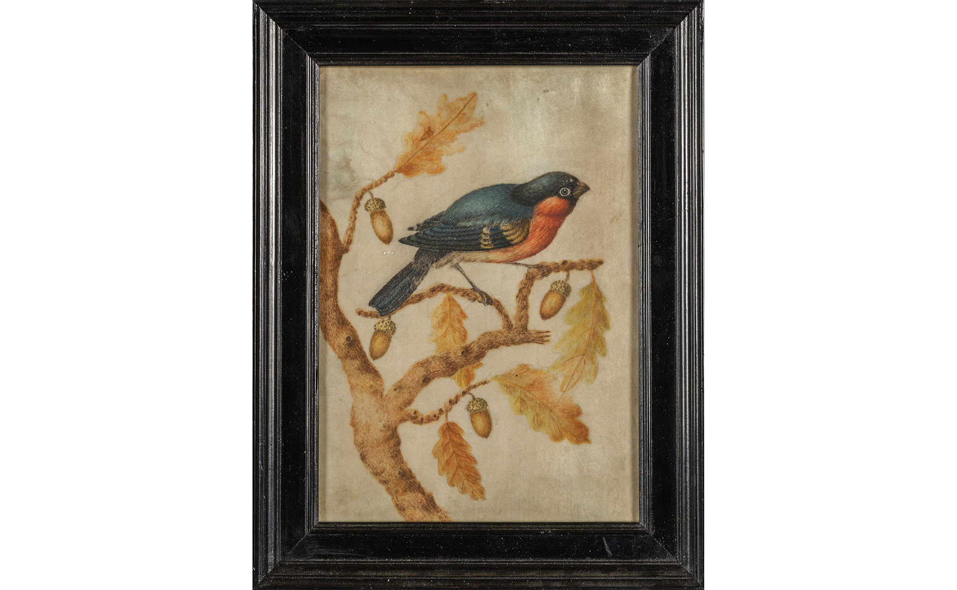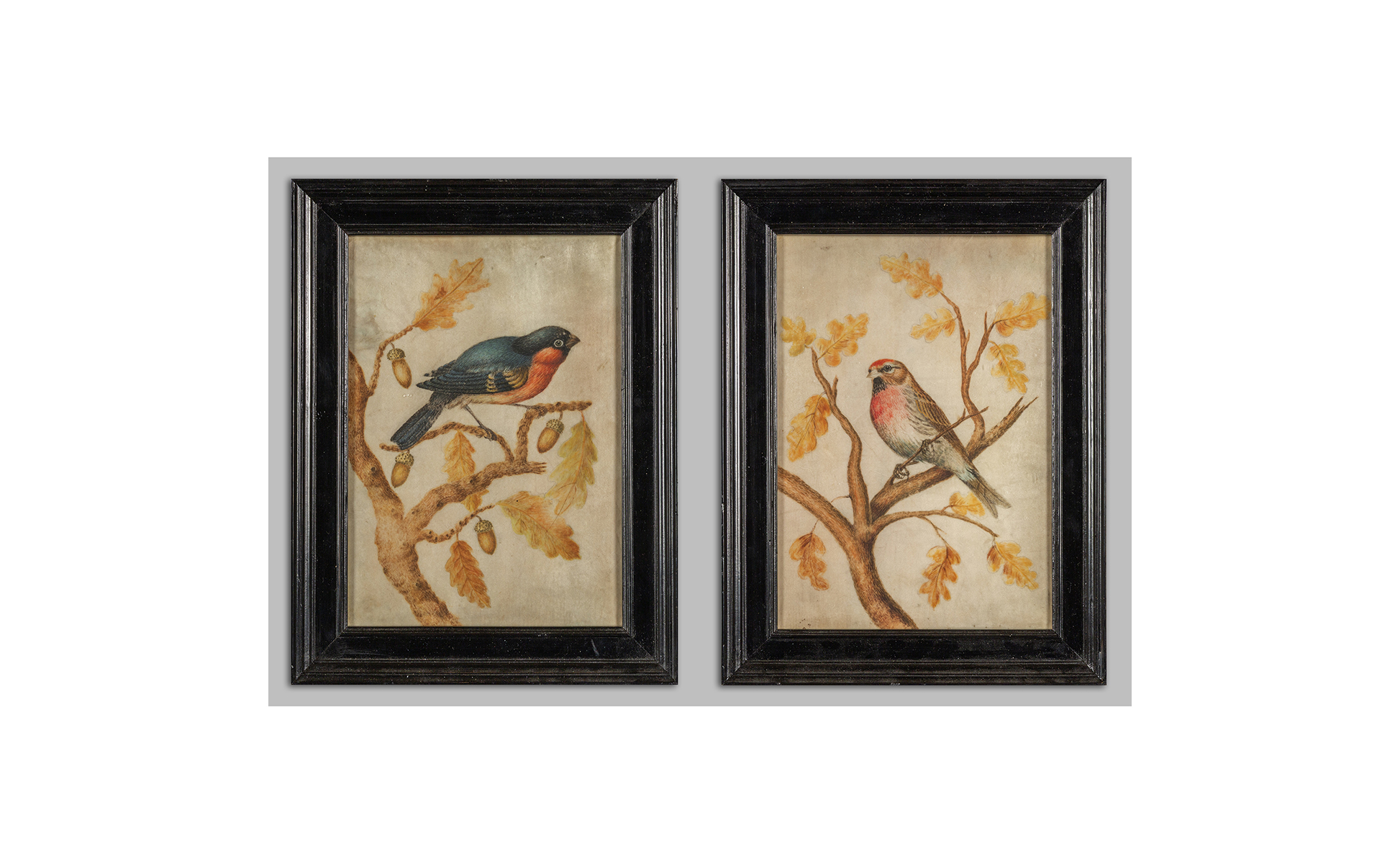 Scuola piemontese fine sec.XVII 'Uccellini' coppia di tempere su pergamena