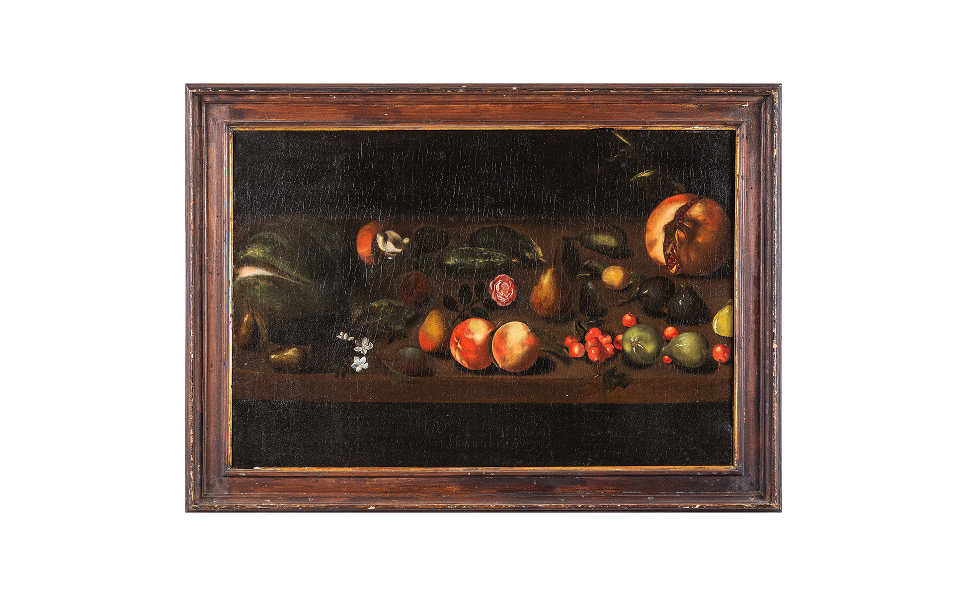 Scuola emiliana sec.XVII 'Natura in posa con pesche frutta e fiori' olio