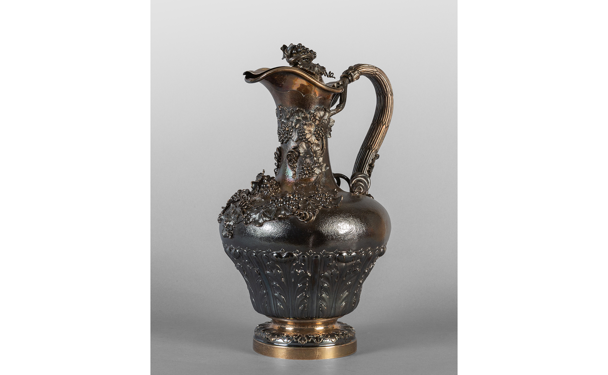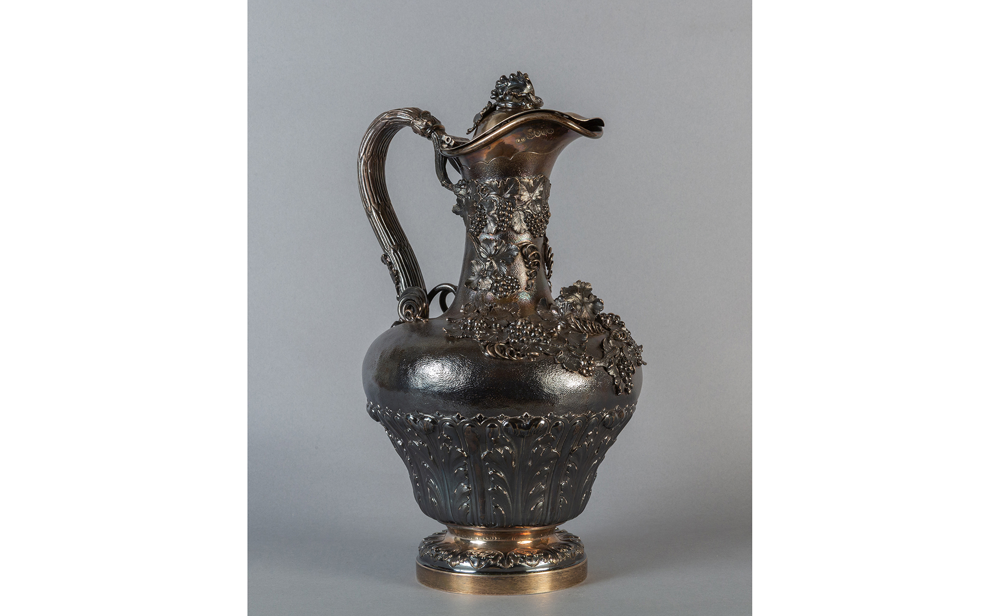 Brocca in argento sbalzato con grappoli Londra 1850