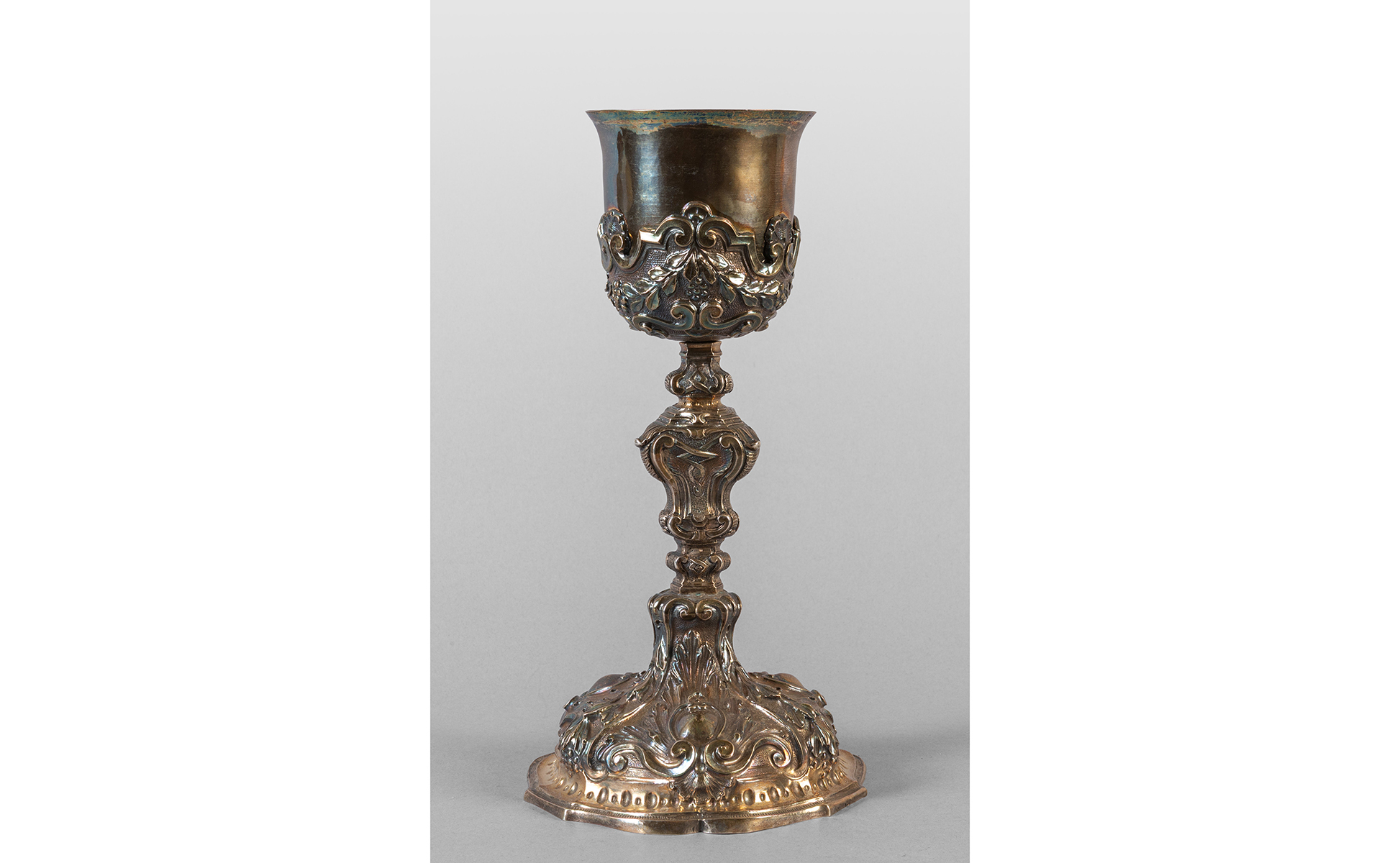 Calice in argento sbalzato con motivi di pellacce ed uva sec.XVIII