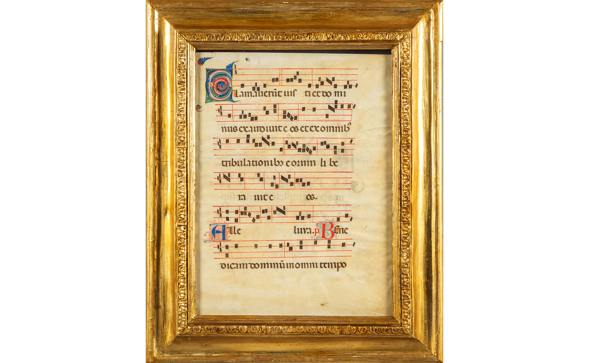 Antifonario tetragramma su pergamena con capolettera Siena inizi sec.XIV