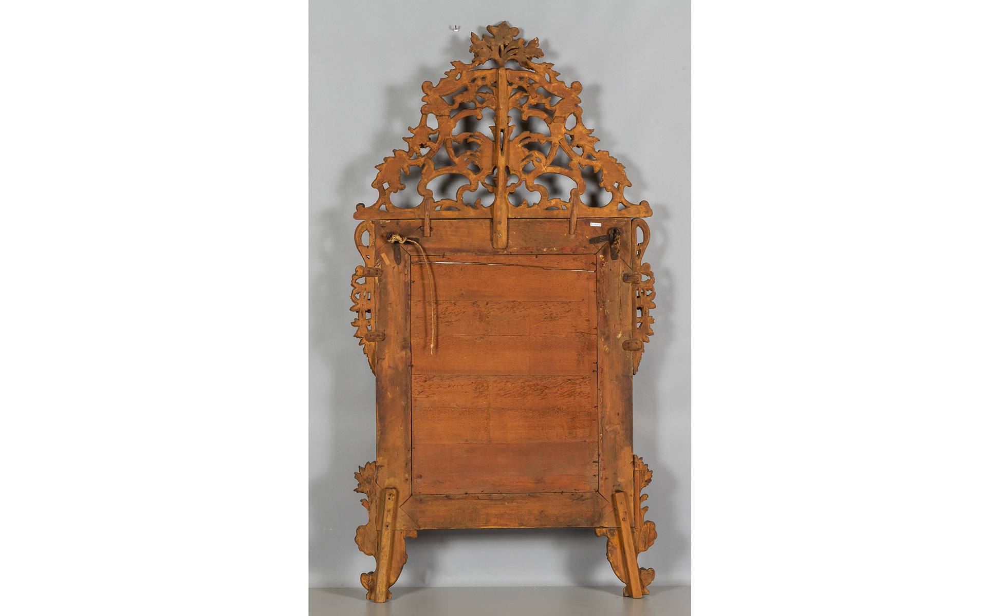 Specchiera Luigi XIV con controspecchi in legno finemente intagliato e dorato Piemonte sec.XVIII