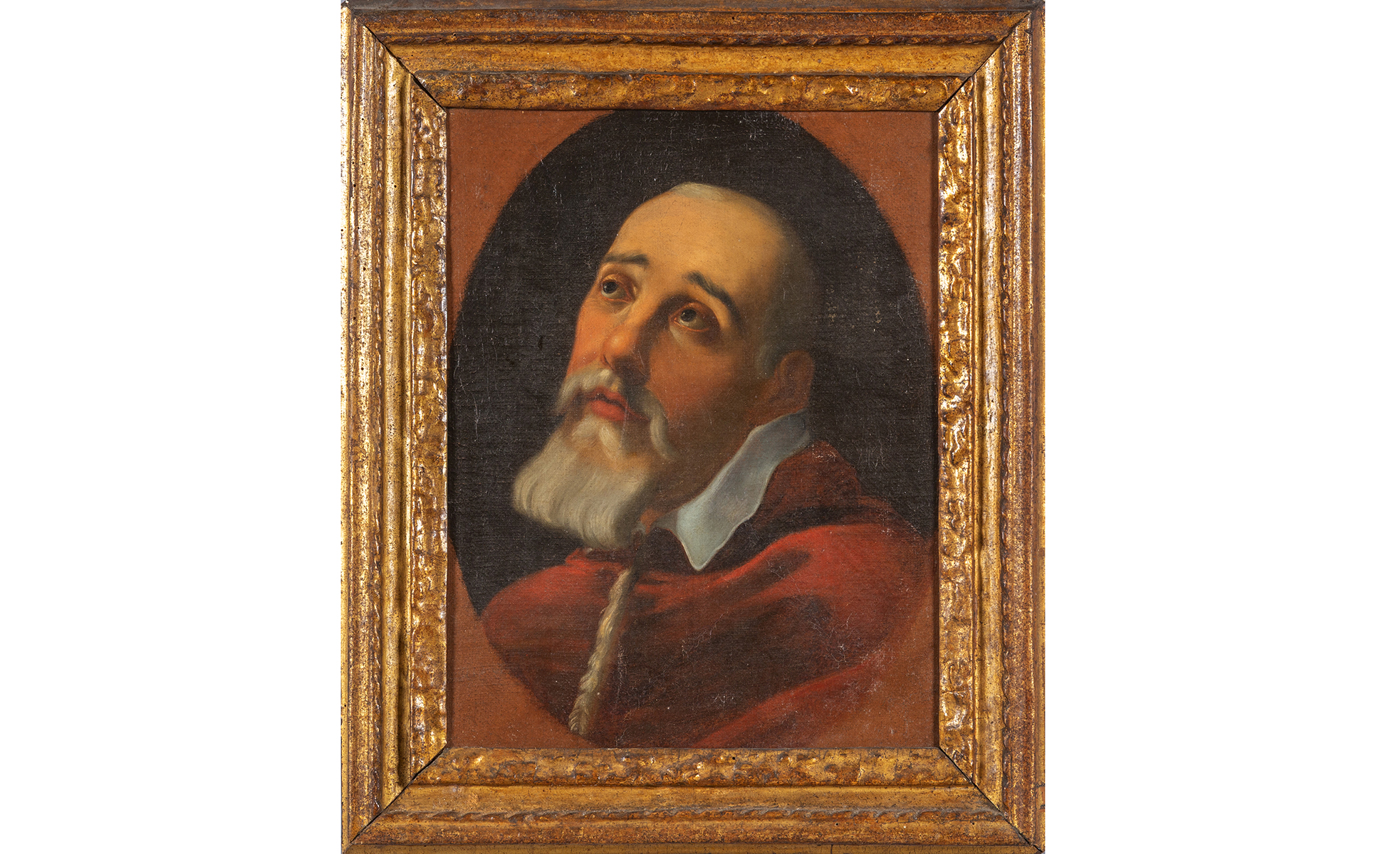 Scuola romana sec.XVII (A.Sacchi) 'Ritratto di Papa Innocenzo X' olio bella cornice coeva in legno intagliato e dorato