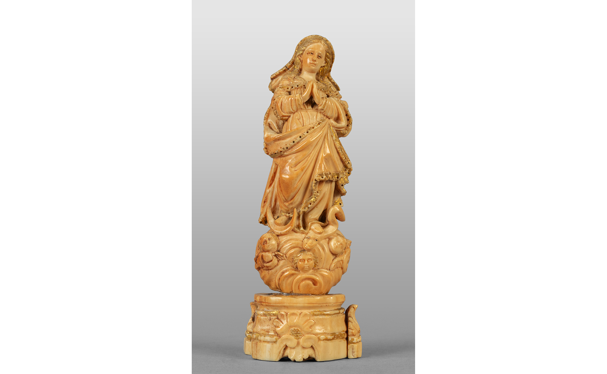 Immacolata scultura in avorio intagliato manifattura indo portoghese sec.XVIII