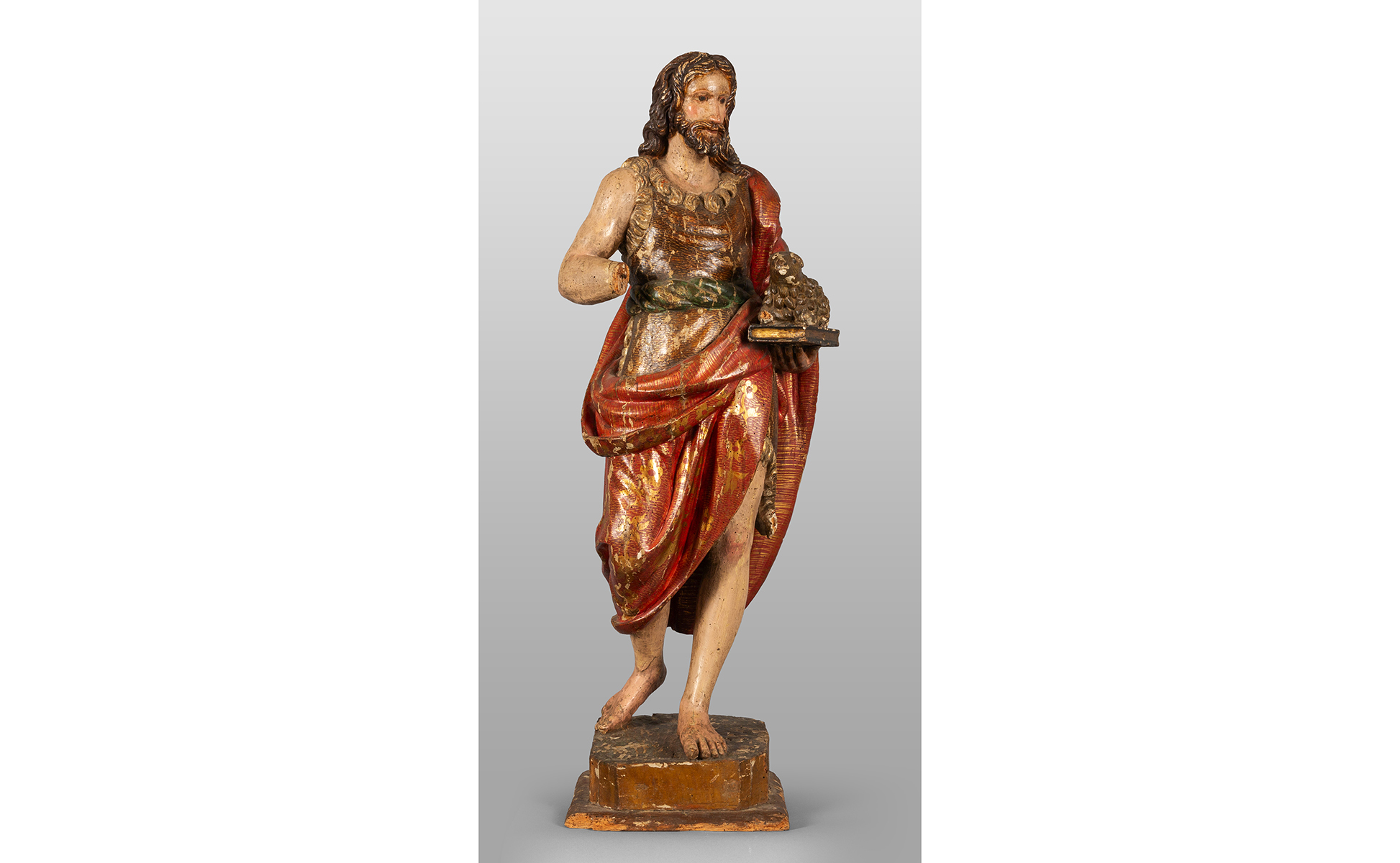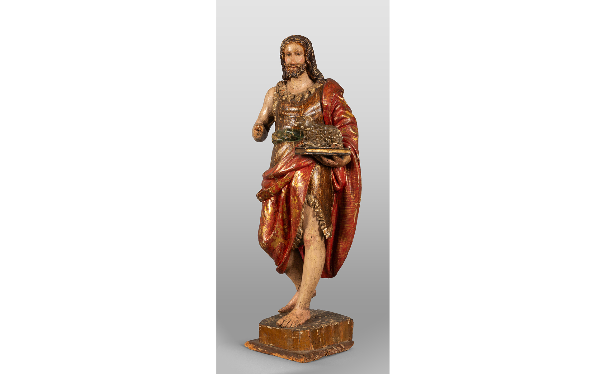 San Giovanni Battista scultura in legno laccato in policromia sec. XVII