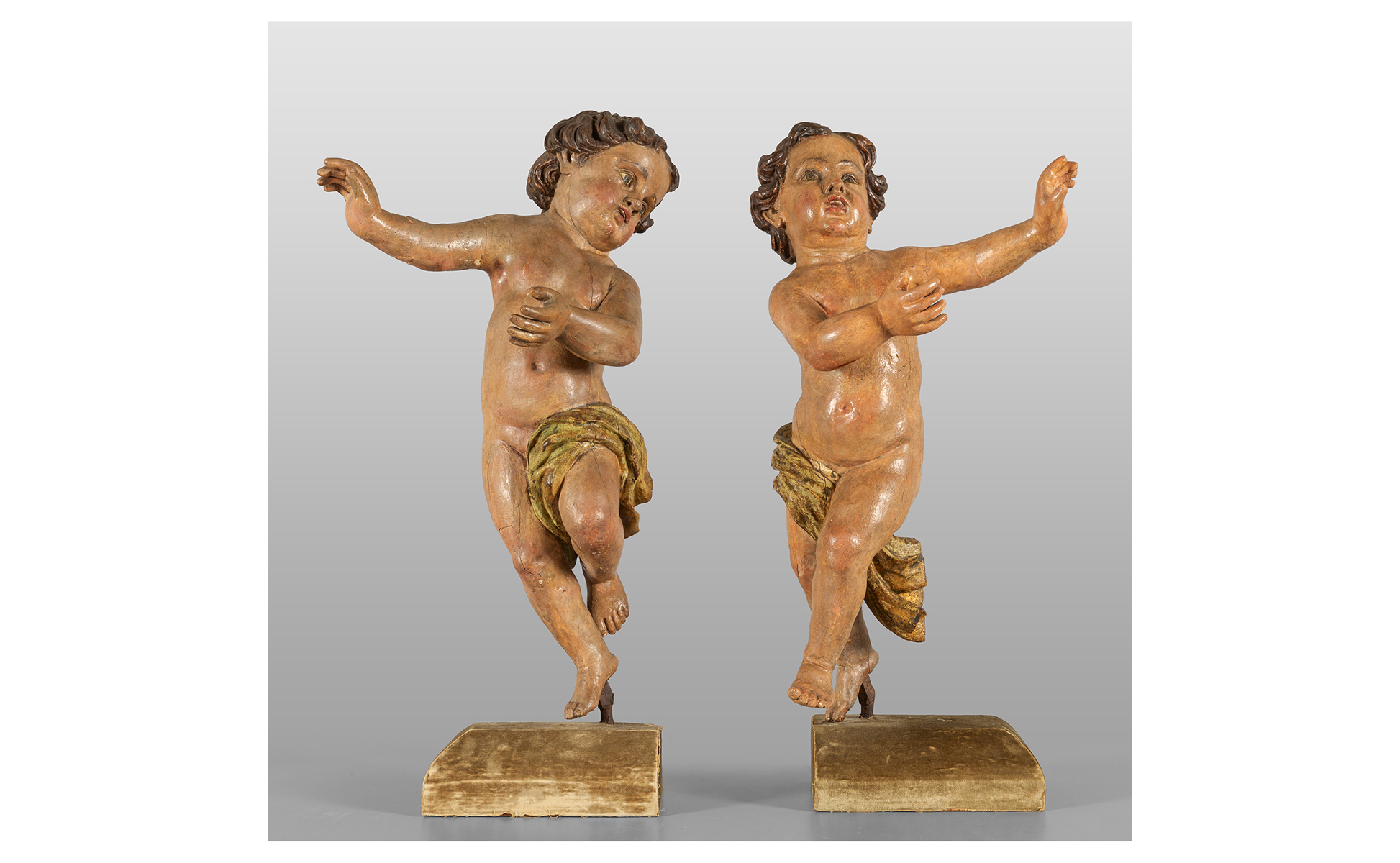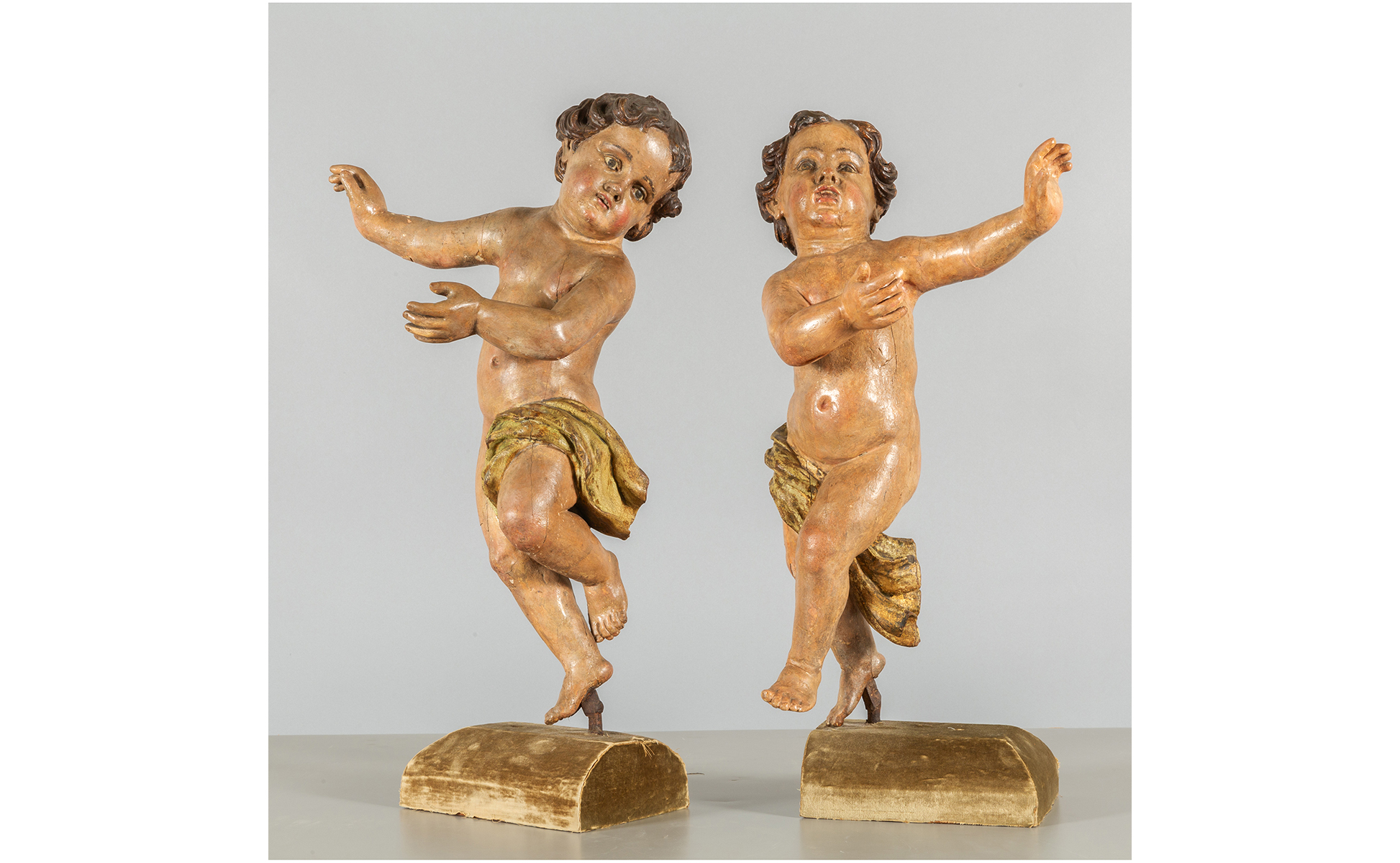 Coppia di angeli in legno intagliato e laccato sec.XVII