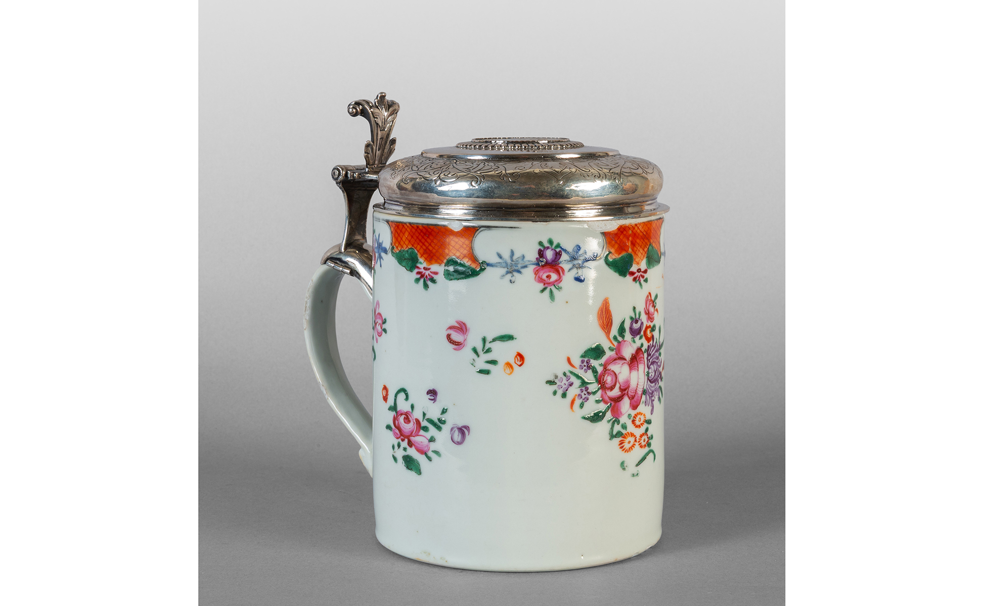 Tankard in porcellana Compagnia delle Indie con coperchio in argento Danimarca sec.XVIII