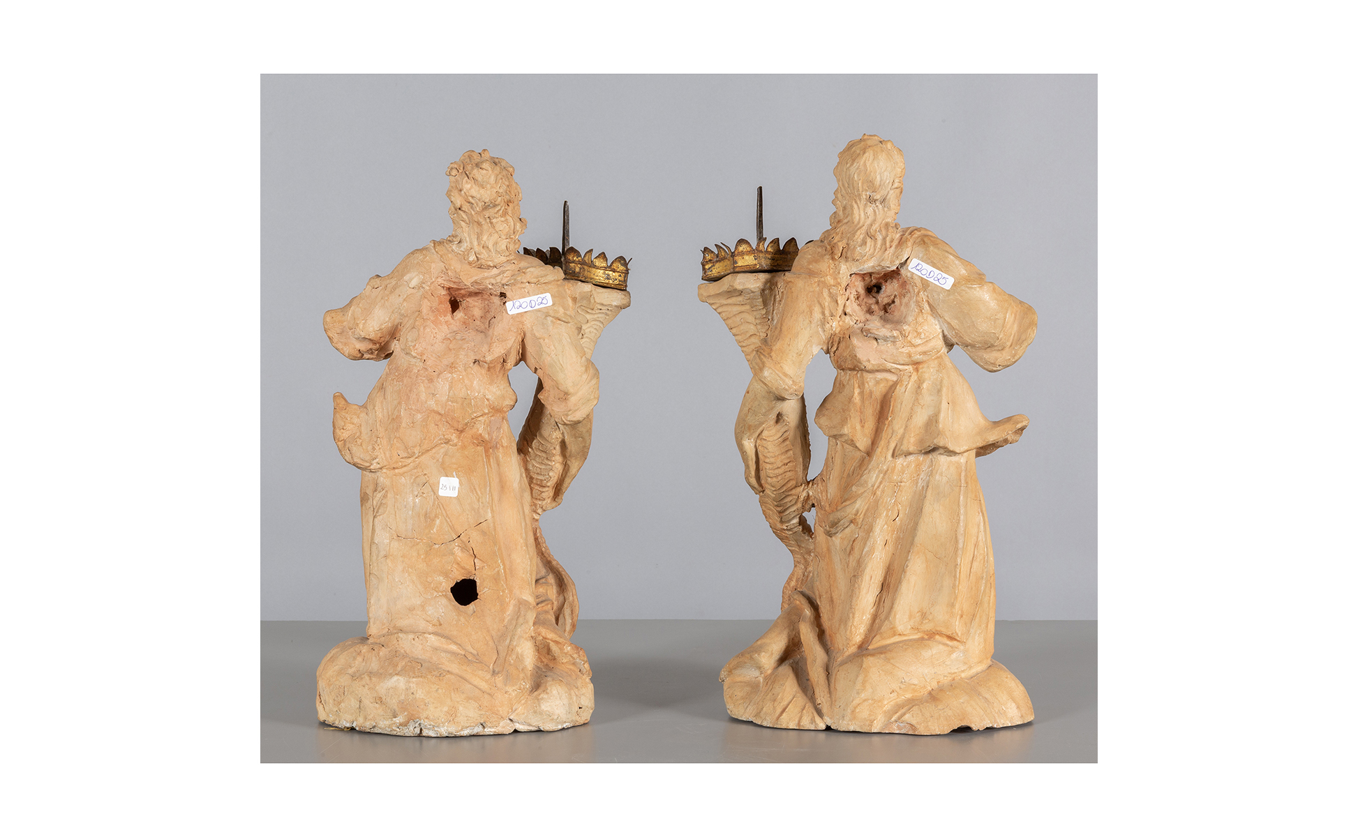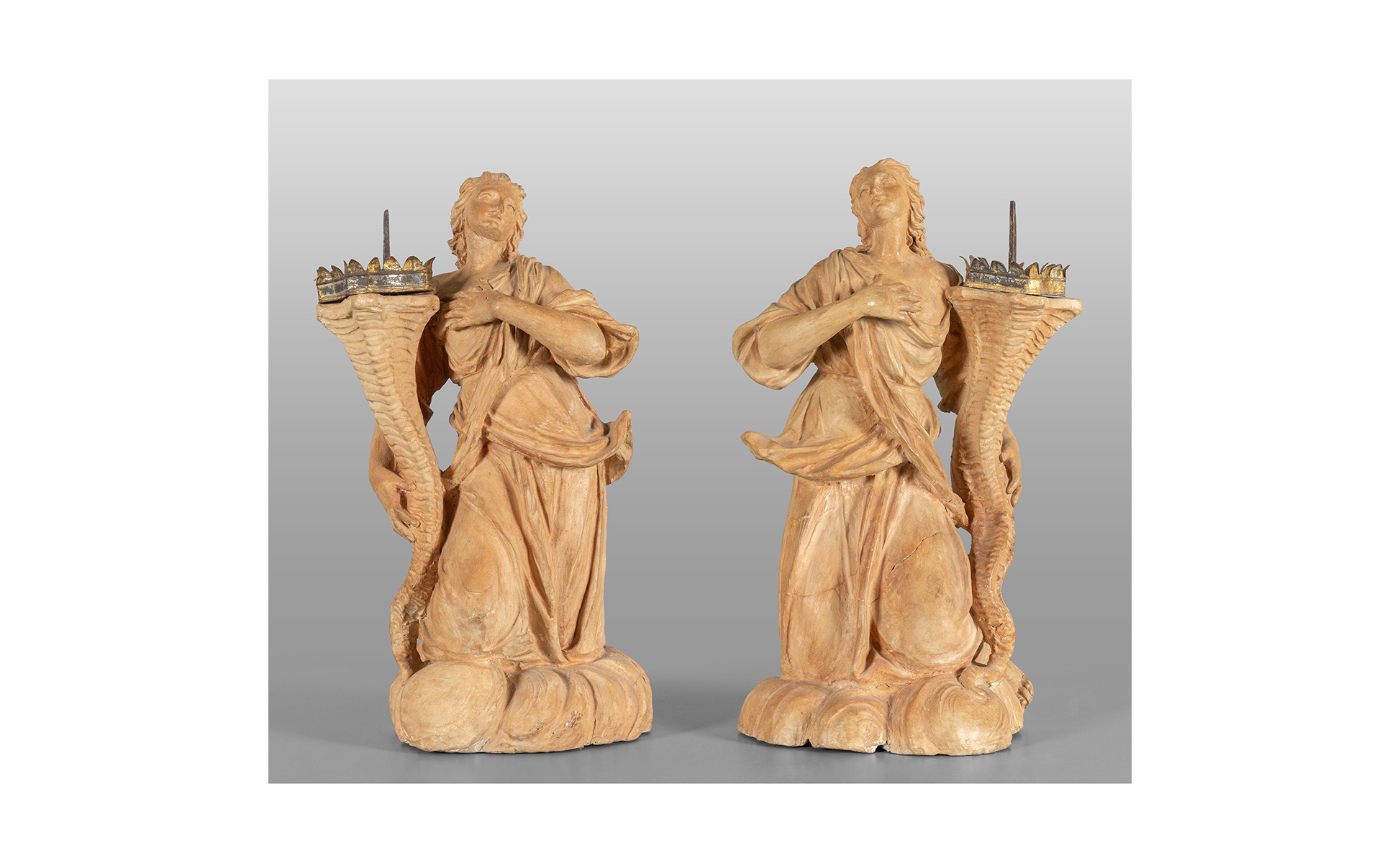 Angeli con cornucopia e torcera coppia di sculture in terracotta Toscana sec.XVIII