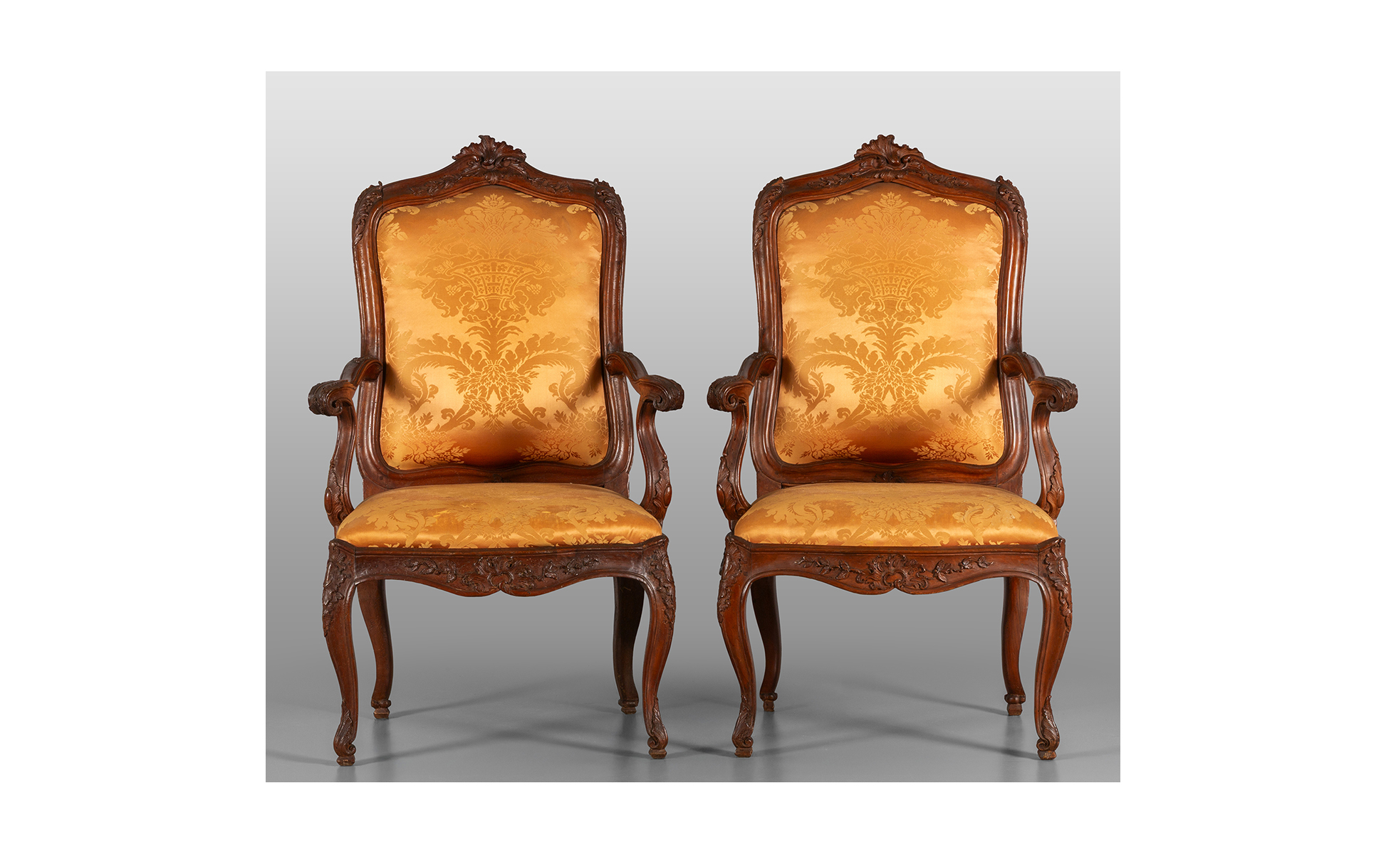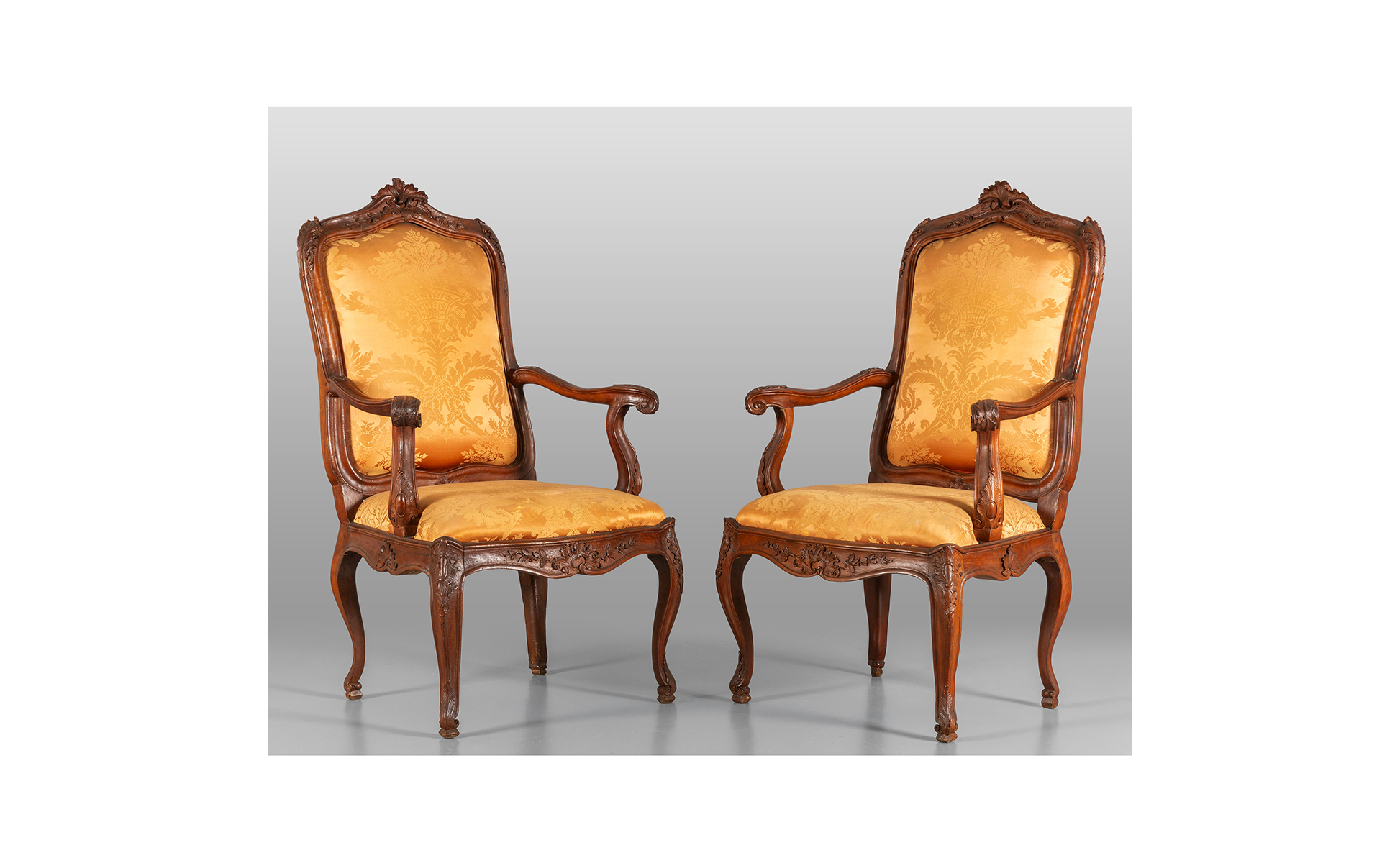 Coppia di poltrone Luigi XIV in legno finemente intagliato Genova sec.XVIII