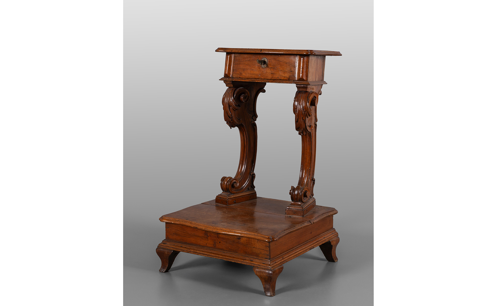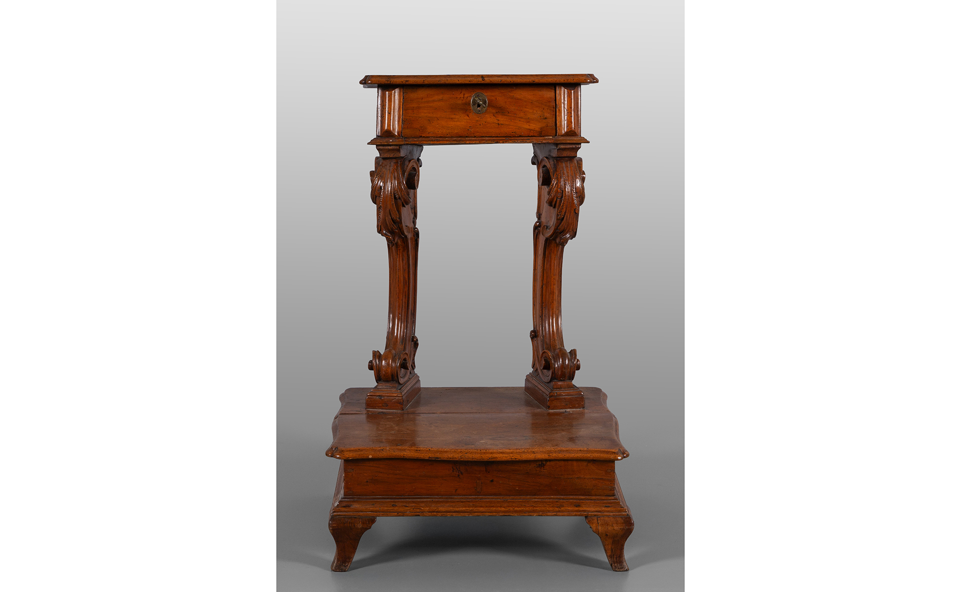 Inginocchiatoio Luigi XIV in noce cassetto nella fascia Genova sec.XVIII