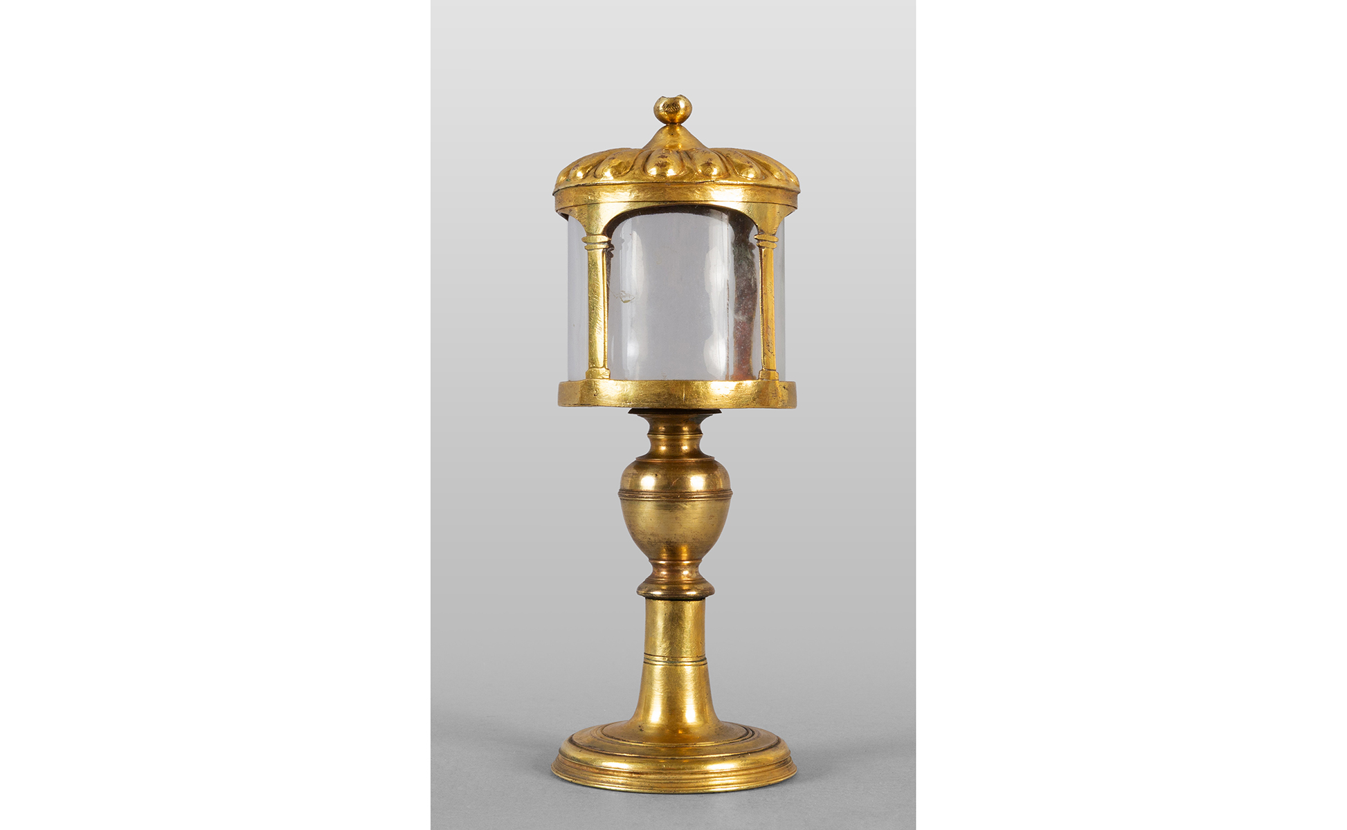 Previous Lot 0272 Next Aste Boetto - Via Mura dello Zerbino 10R, 16122 Genova ASTA DI ANTIQUARIATO E DIPINTI SEC.XIX Asta di Antiquariato e dipinti sec.XIX Tuesday 17 June 2025 hours 15:00 (UTC +01:00) OGGETTISTICA Pisside in bronzo dorato sec.XVIIh.cm.21