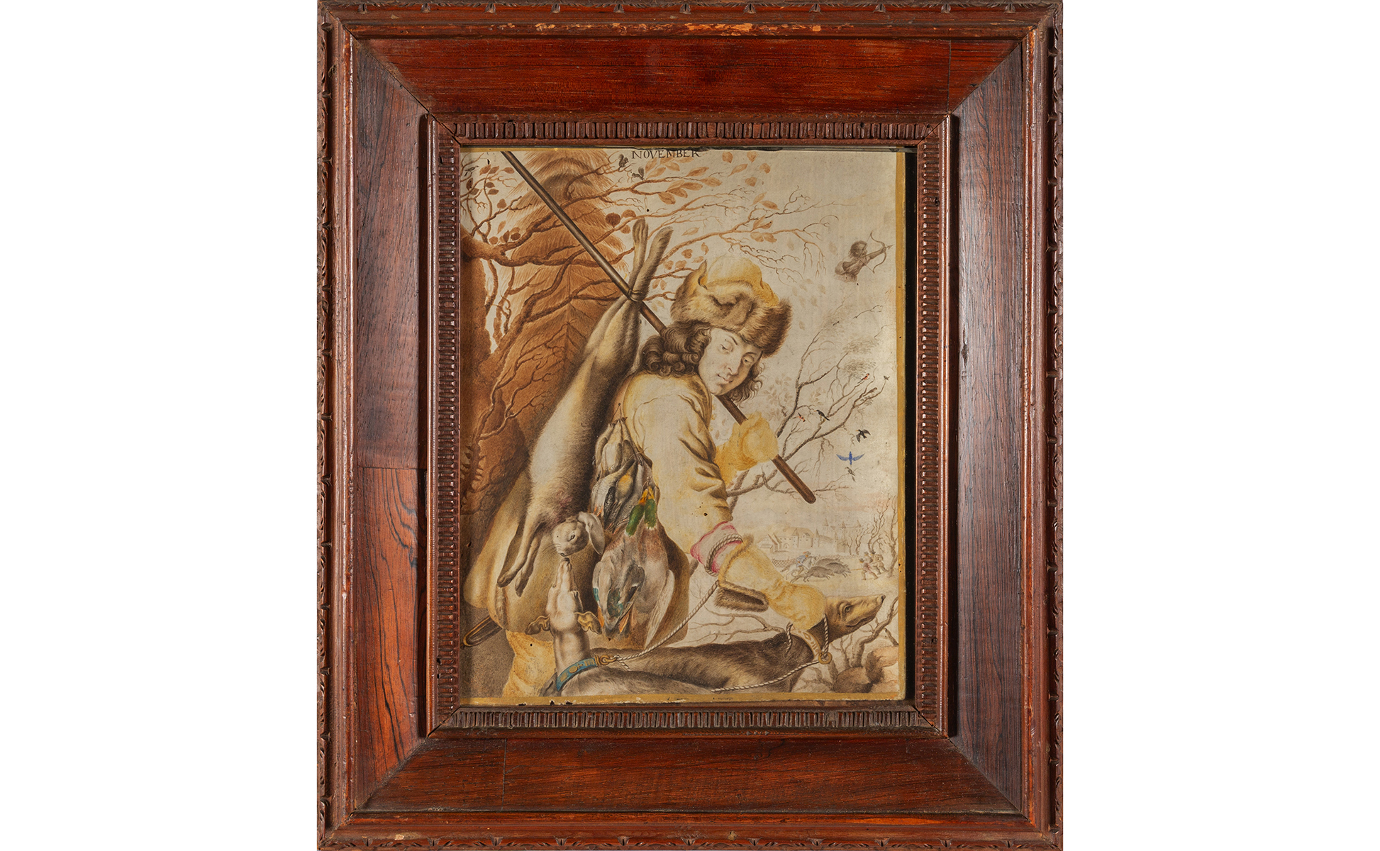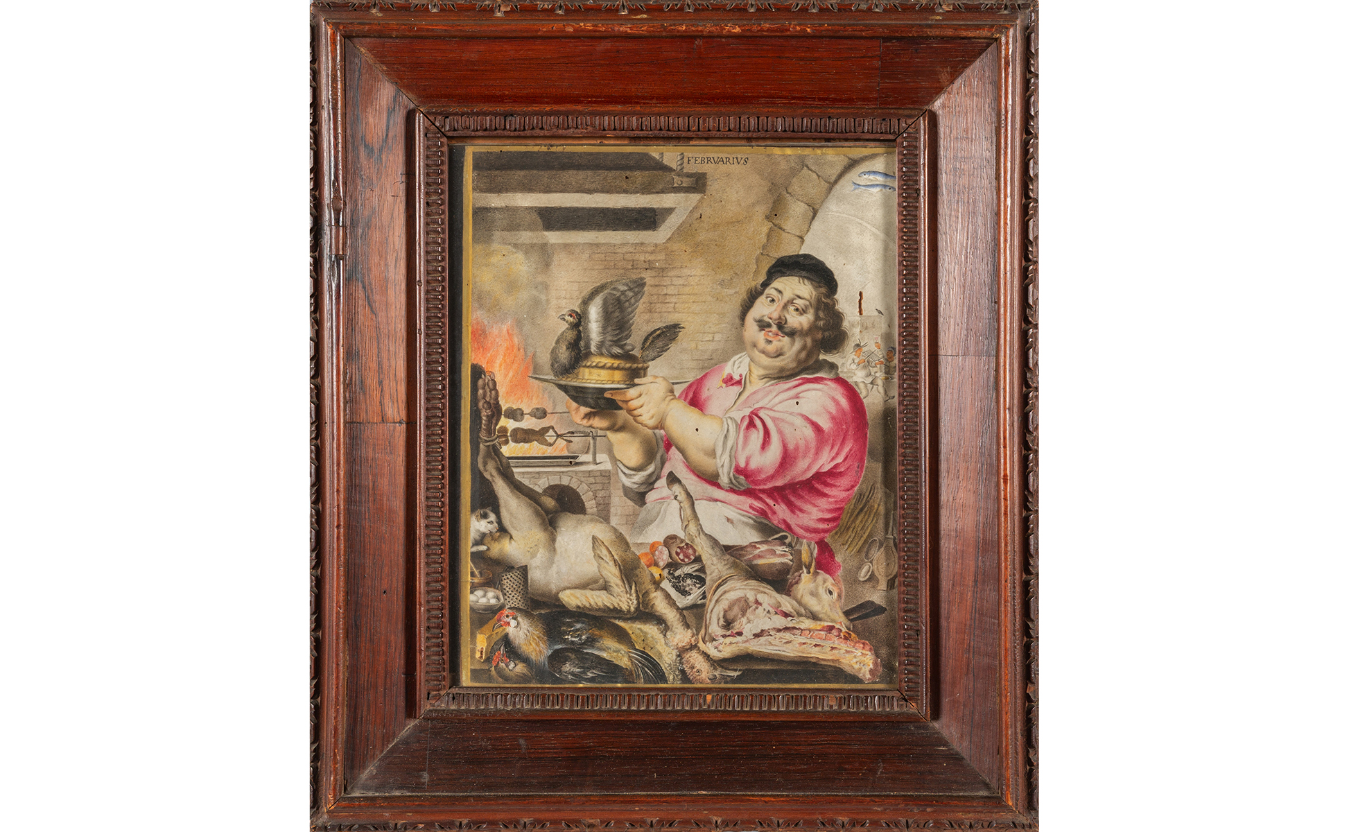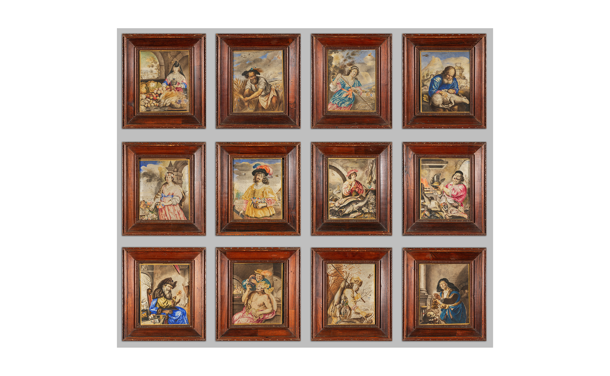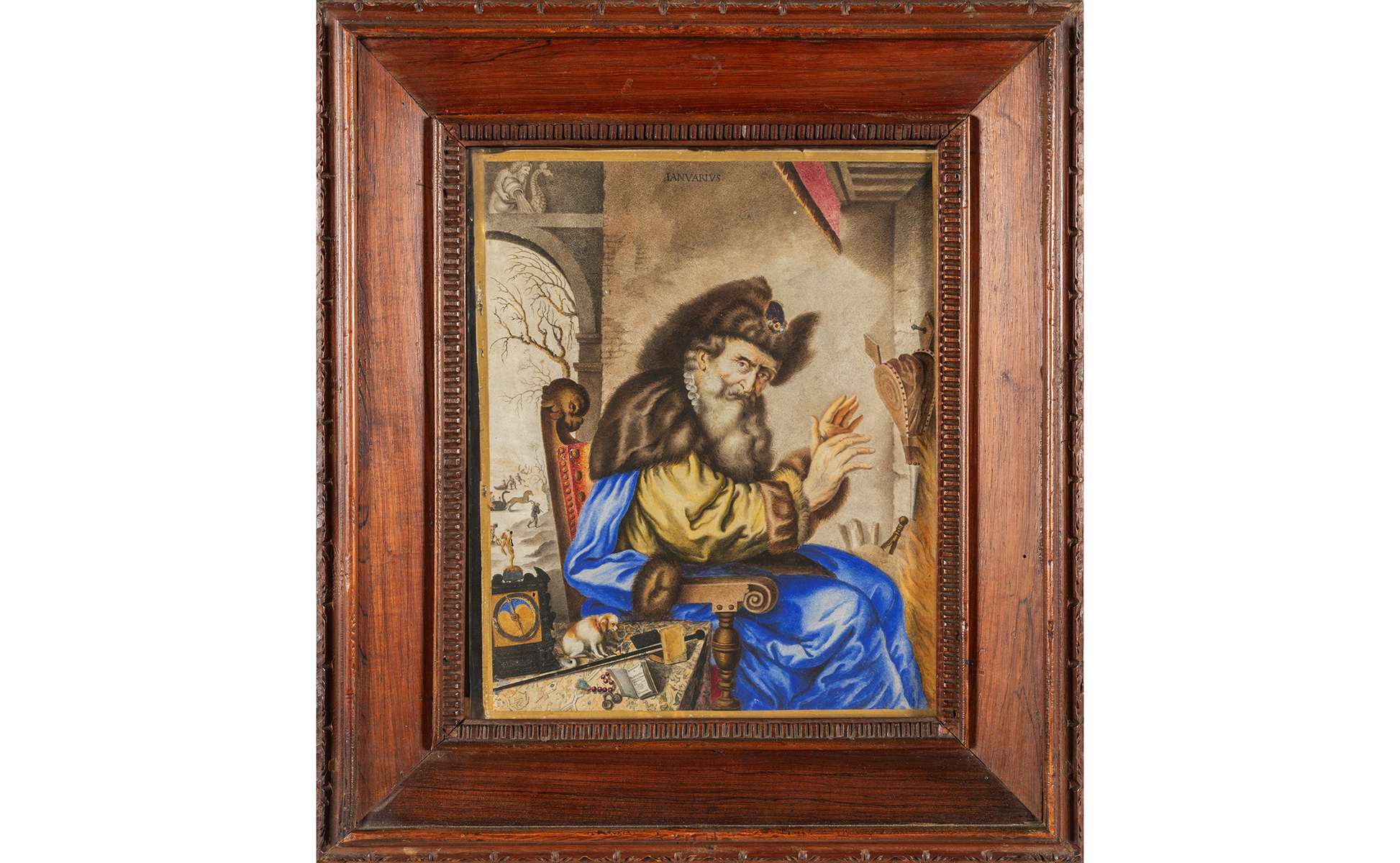 Scuola fiamminga sec.XVII 'I mesi dell'anno' dodici tempere su pergamena tratte dalla serie ideata da Joachim von Sandrart