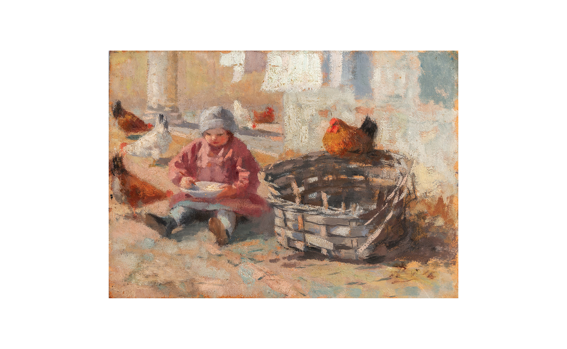 Previous Lot 0293 Next Aste Boetto - Via Mura dello Zerbino 10R, 16122 Genova ASTA DI ANTIQUARIATO E DIPINTI SEC.XIX Asta di Antiquariato e dipinti sec.XIX Tuesday 17 June 2025 hours 15:00 (UTC +01:00) DIPINTO La pappa con le gallineolio su cartone cm. 35x25