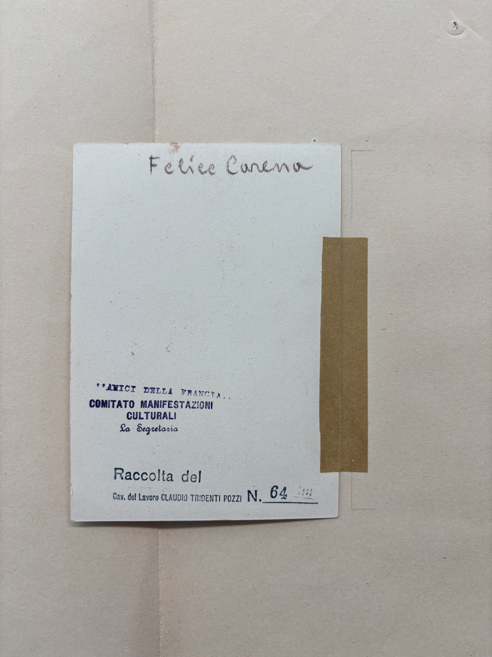 Timbro della Raccolta Claudio Tridenti Pozzi con numero di repertorio al retro