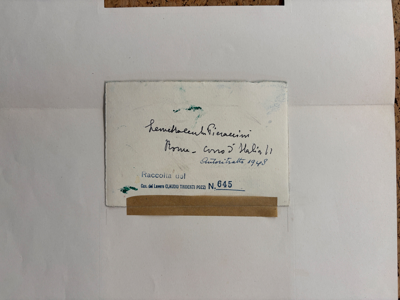 Timbro della Raccolta Claudio Tridenti Pozzi con numero di repertorio al retro
