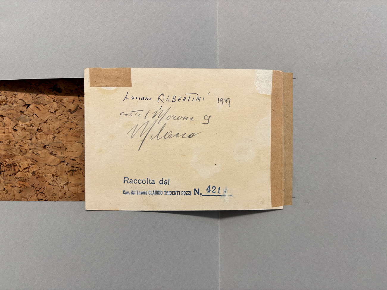 L'opera è parte della collezione di Piccolo Formato del Cavaliere del Lavoro Claudio Tridenti Pozzi, proprietario del negozio Pozzi Abbigliamento Maschile di Milano, una raccolta di opere formato cartolina iniziata nel 1935