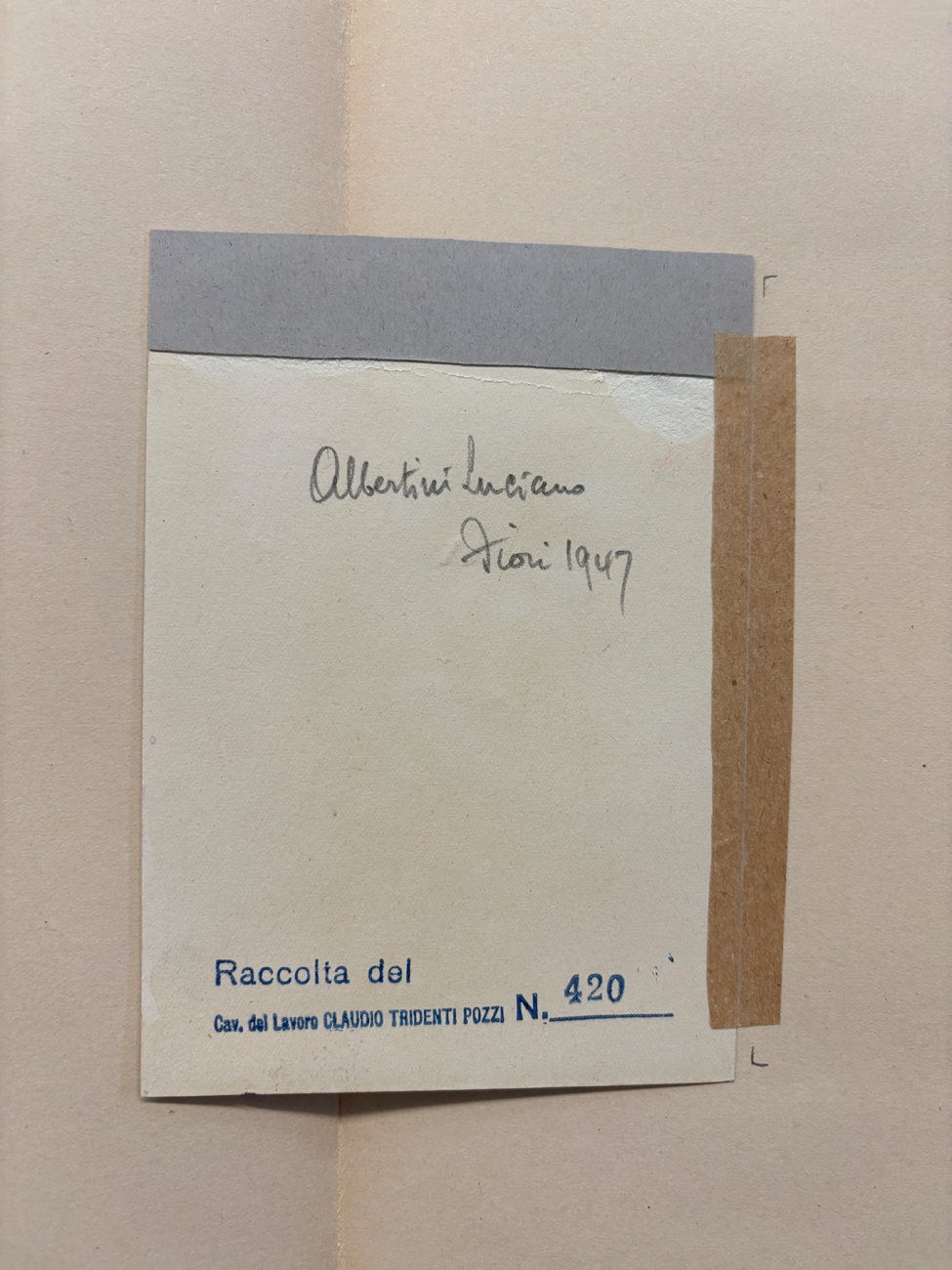Timbro della Raccolta Claudio Tridenti Pozzi con numero di repertorio al retro