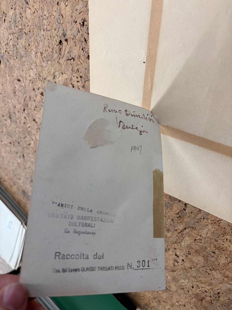 Timbro della Raccolta Claudio Tridenti Pozzi con numero di repertorio al retro