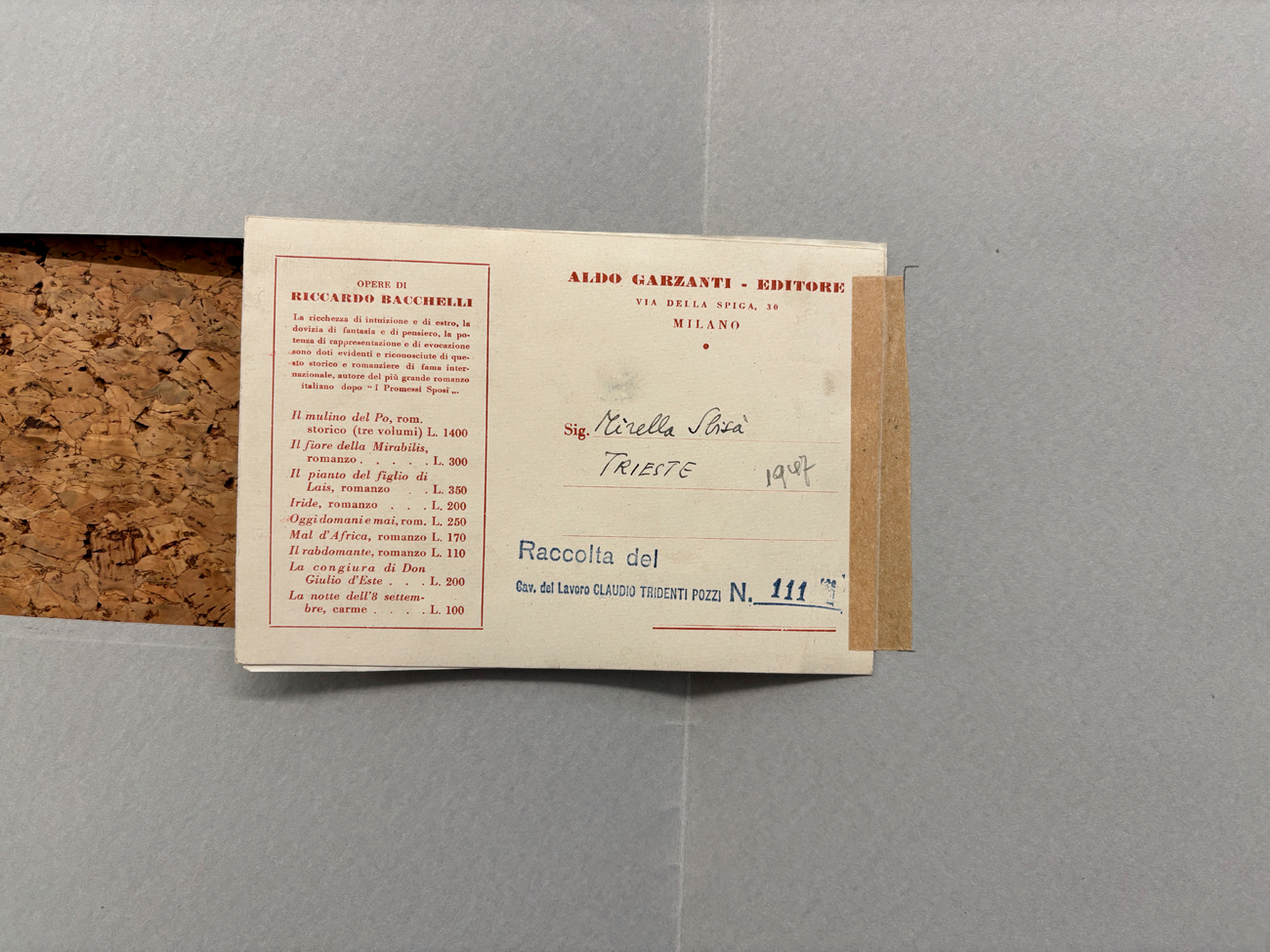 Timbro della Raccolta Claudio Tridenti Pozzi con numero di repertorio al retro