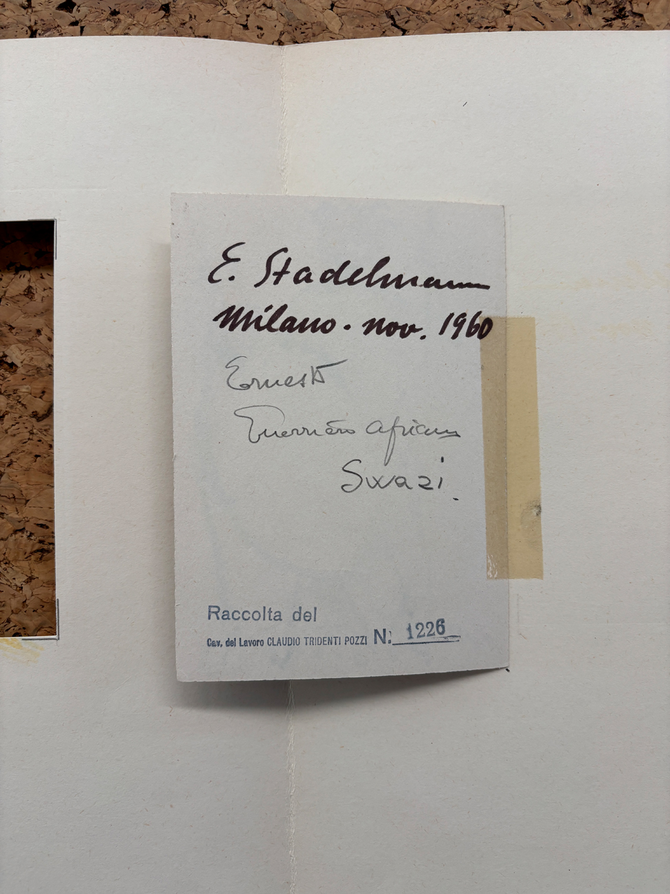 Timbro della Raccolta Claudio Tridenti Pozzi con numero di repertorio al retro
