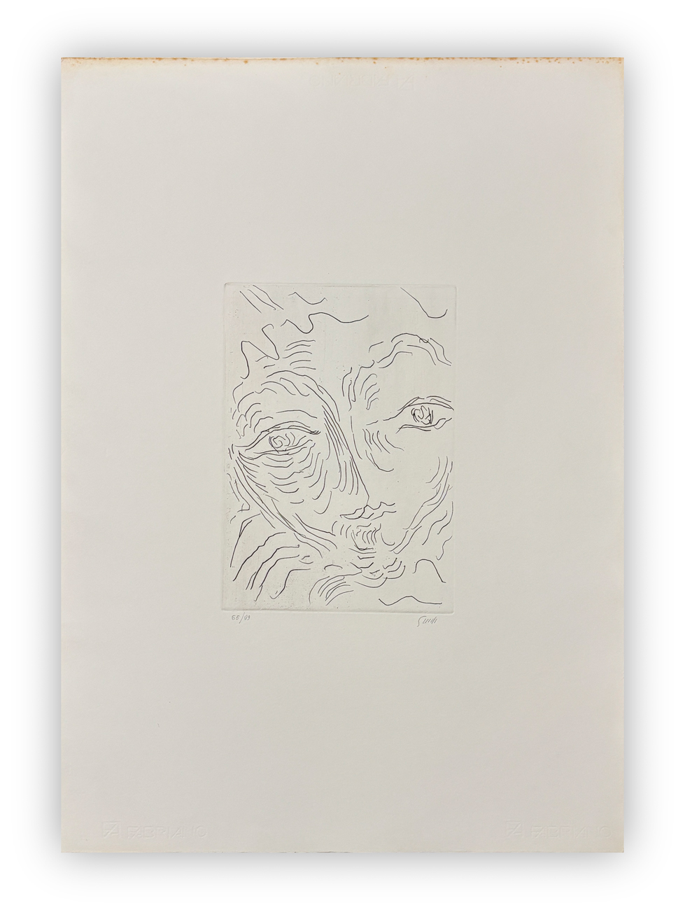 Firma e numerazione (Esemplare 65/99) a matita al fronte