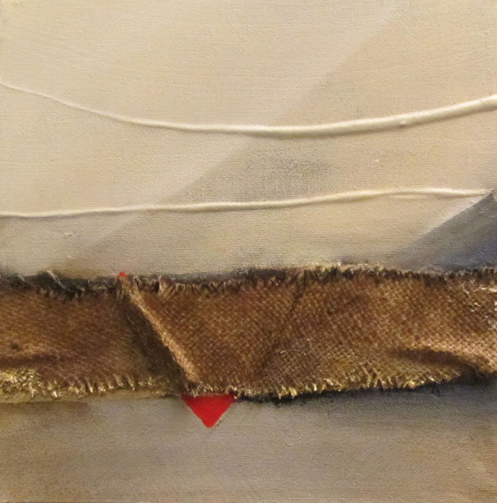MAURA MENICHETTI Perugia 1953 ROSSO E ORO CON IUTA 2011 Tecnica mista su tela 25x20 Certificato di autenticità