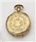 CASSA: in oro 14K lavorata a sbalzo e incisione; numero di cassa presente sulla superficie interna di entrambi i fondelli; titolo e punzone dell'oro (scoiattolo) visibile sulla superficie interna del fondello piu' esterno