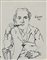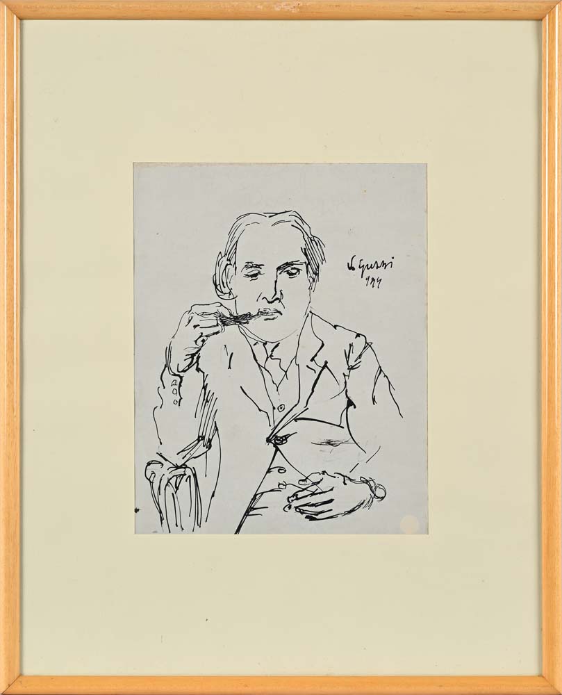 Ritratto di Montanarini 1944 Firma e data in alto a destra "V. Guzzi 944". Al verso etichetta "Archivi Guzzi - Roma" Inchiostro su carta 28,5x22,5 cm