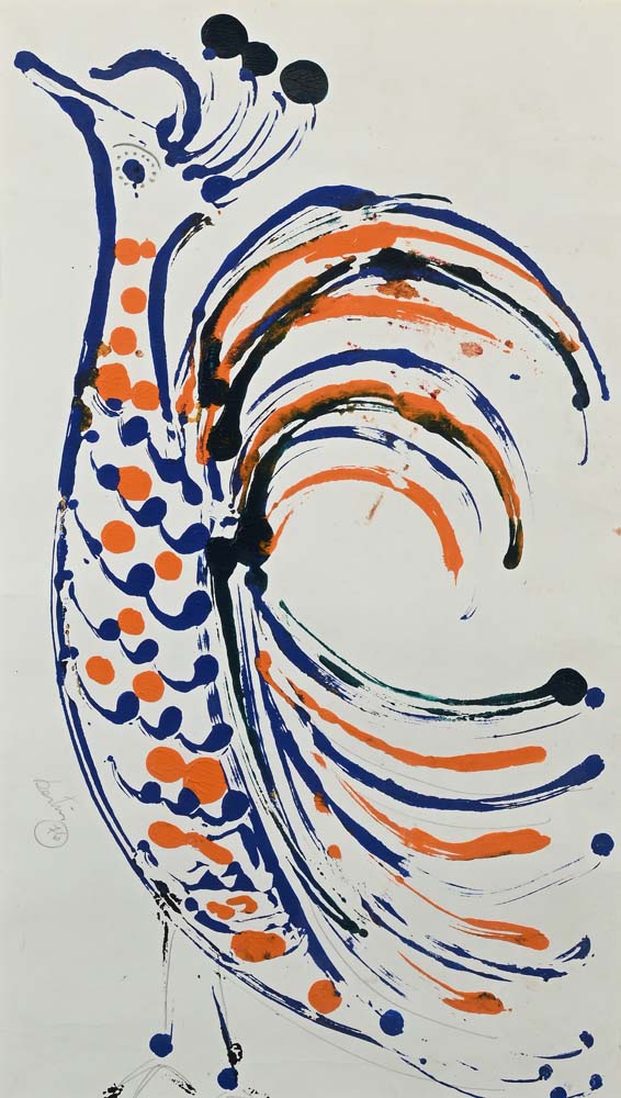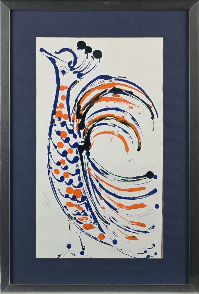 Il Gallo 1976 Firma e data "Bertina '76" Acrilici su carta cm 47x27 - in cornice cm 62x42