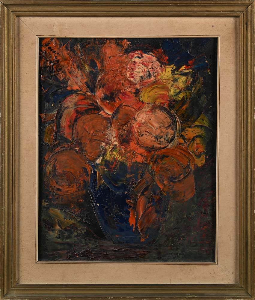 Vaso blu con fiori arancioni Firma e data in alto a sinistra "Bertina '71" Olio su tela cm 50x40 - in cornice cm 63x54