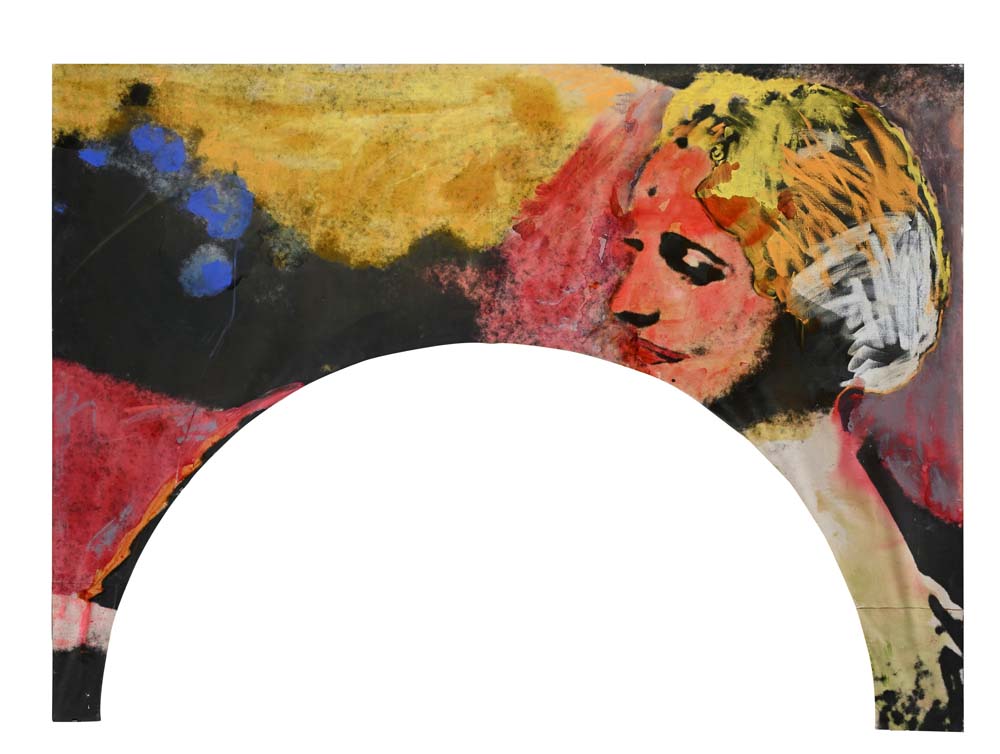 Senza titolo Metà anni '70 Trattasi di una rara opera realizzata a smalto su tela emulsionata su struttura in legno sagomata per lo Show Room Battistoni in Via Condotti 61 a Roma cm 286x626 Certificato di autenticità rilasciato dall'Archivio Mario Schifano, Roma Coll. Eredi Gugliemo Battistoni, Roma