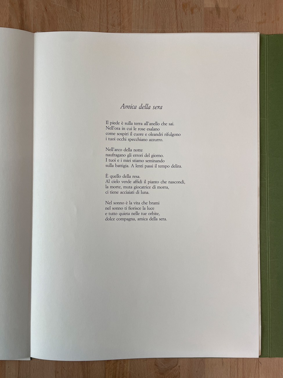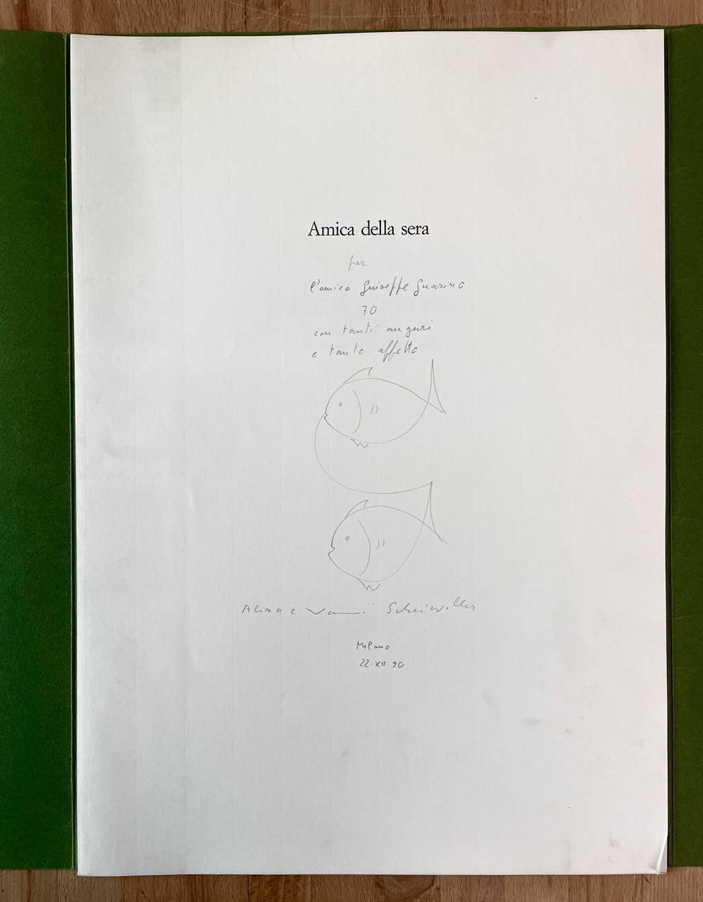 Il presente esemplare piccolo disegno e dedica ad personam di Alina e Vanni Scheiwiller a matita all'interno