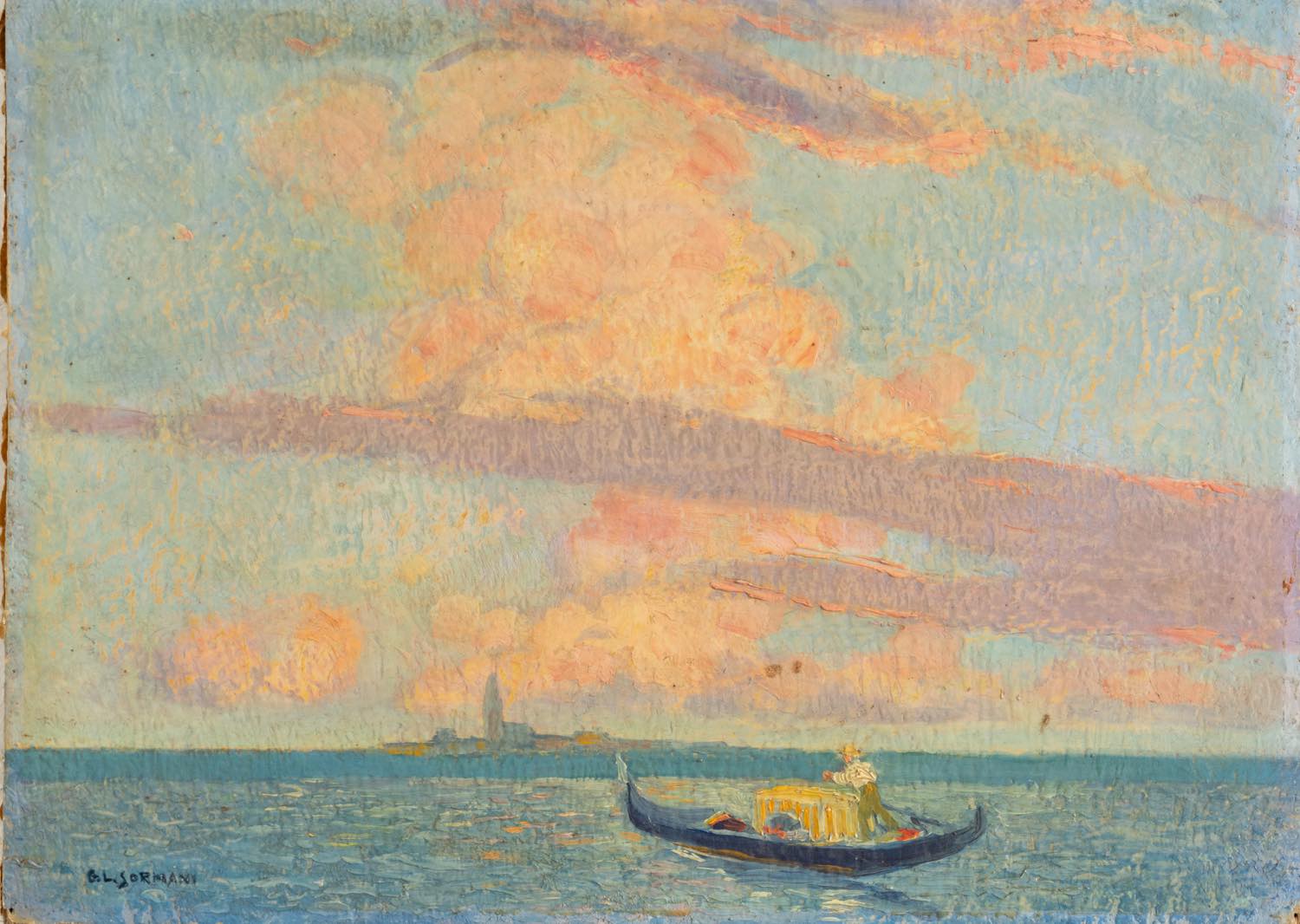 Gian Luciano Sormani (Legnano, 1867 - Verona, 1937), "Laguna veneta con gondola".