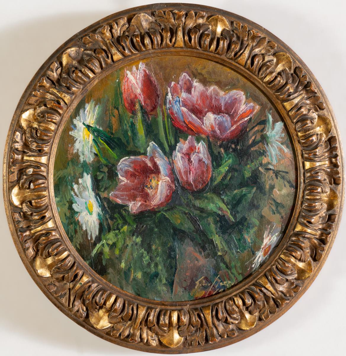 Olio su tavola, reca firma e data in basso al centro, diametro cm 25,5 - con cornice diametro cm 34,5