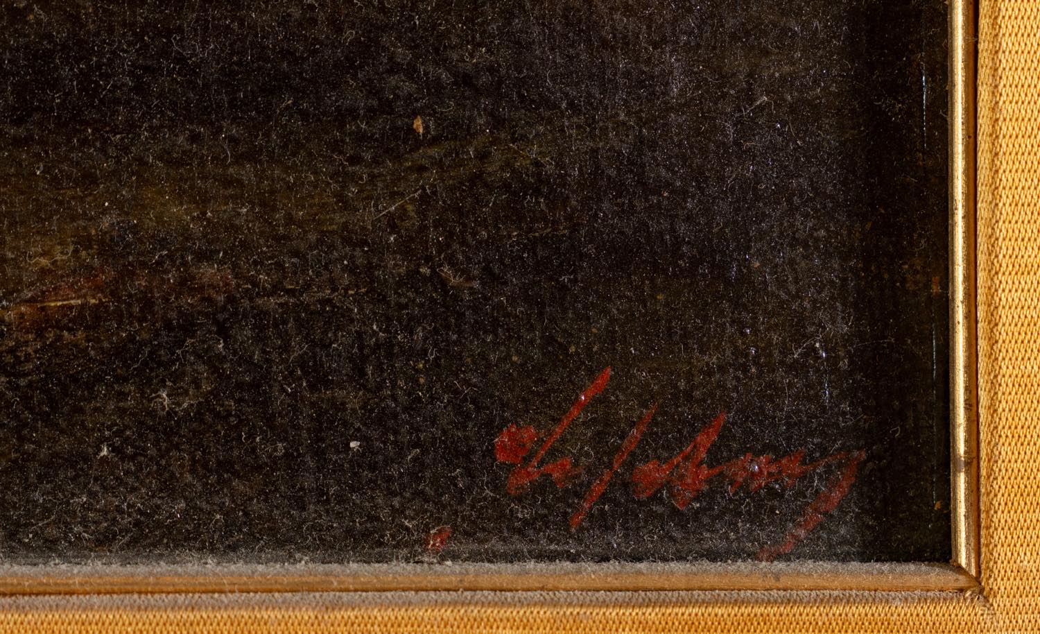 Olio su tela, reca firma non decifrata in basso a destra, H cm 18,5x35- con cornice H cm 37x52,5