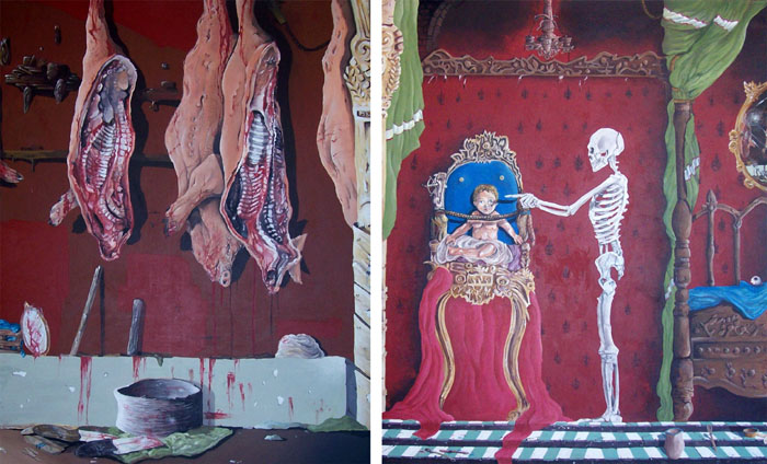 ALEX PROSPERI Teramo 1989 LA MORTE NELLA TESTA N.D. Acrilico su tela (dittico composto da n. 2 tele di cm 120 x 100 cad.) 120x200 Certificato di autenticità