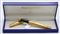 Gold-plated fountain pen with 18K gold nib. Comes with original box. Made in France. The item is pre-owned but in excellent condition. Inked. Functionality not guaranteed.