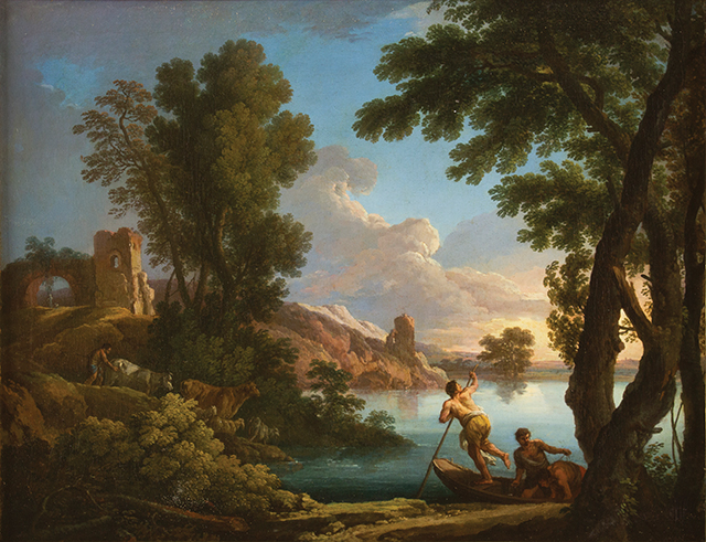 ANDREA LOCATELLI Roma 1695 - 1741 Paesaggio Laziale con pastori, un ponte ed un torrione Paesaggio con marina verso il tramonto Coppia di dipinti ad olio su tela, cm 49 x 64 Pubblicazioni Andrea Busiri Vici. Andrea Locatelli e il Paesaggio Romano del ‘700. Ed. Ugo Bozzi 1974. n. 84; n.85 I due paesaggi con figure, in pendant, sono da considerare due opere esemplari dello stile del Locatelli, come giustamente ebbe a dire Andrea Busiri Vici nella storica monografia sul maestro pubblicata nel 1975. Tipico è il modo di comporre del Locatelli sul piccolo formato, con la grazia di un miniatore; il paesaggio fa sempre perno su una quinta boschereccia in primo piano che introduce a una veduta ariosa intervallata da un capriccio architettonico, puntellato dai monumenti romani più noti. Nel primo dipinto il ponte sul fiume è certamente da riconoscere con il Ponte Lucano e il Sepolcro dei Plautii a Tivoli, ancora oggi esistente seppure manomesso. Un grande albero di quercia al centro della composizione lascia spazio a tre pastori in primo piano seduti in una selva in ombra. In secondo piano una veduta agreste in piena luce con il ponte sul fiume, gregge al pascolo e donne intente a lavare indumenti nel corso d’acqua. Nel secondo dipinto a pendant più che una veduta di marina si può leggere un paesaggio lacustre, con tre figure intente a togliere gli ormeggi ad una piccola barca da pesca in legno; nell’orizzonte di sfondo si riconosce nettamente un lembo di terra che chiude lo specchio d’acqua, nella luce del tramonto. Il ponte sulla sinistra è un capriccio d’invenzione, ma ricorda le forme del Ponte Nomentano sull’Aniene, quest’ultimo coperto però interamente da una superfetazione medievale merlata. Anche in questo caso è sapientissimo il gioco della luce, che parte dalla penombra degli alberi sulla destra per arrivare alla luce radente sul ponte e sulla costa in lontananza. Condivisibile la posizione del Busiri che accosta le due tele in esame a due tra i massimi capolavori del Locatelli, i due Paesaggi Laziali con figure e un ponte conservati presso la Galleria Pallavicini a Roma. Altri confronti stringenti con le opere in oggetto sono diversi paesaggi in pendant o singoli citati dai numeri 87 al 92 della monografia del Busiri sopra citata. “Paesaggio di grande qualità dai toni freddi azzurrini del mattino, che denota per il suo stile impressionistico, punti di contatto con il dipinto al numero precedente e con le due tele Pallavicini, cat. n. 135 e 136 e pendant col numero seguente e con questo forma una delle coppie di paesaggi più felici del Locatelli.” “E’ pendant al numero precedente ed è anche questo un dipinto di grande qualità con qualche accenno impressionistico nel modo di ‘toccare’ le frasche in primo piano a sinistra. Tutto il paesaggio è soffuso della luminosità rosata del cielo al tramonto contro il quale si stagliano i tronchi della destra” Riportiamo le due schede critiche ai due dipinti pubblicata nel vol. sopra citato
