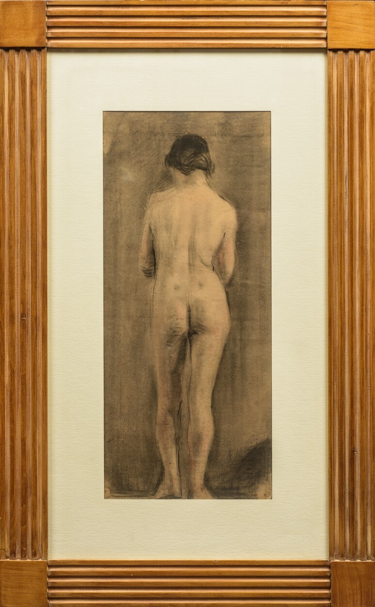 Antonio Mancini (1852 - 1930) Nudo femminile di schiena carboncino su carta...