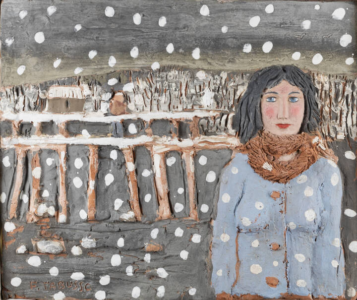 Bibl.:-"Francesco Tabusso. Dipinti su bassorilievi", catalogo della mostra, Galleria "Centro Arte La Tesoriera", Torino, 5 dicembre 2009-15 gennaio 2010, ripr. colori n. XII