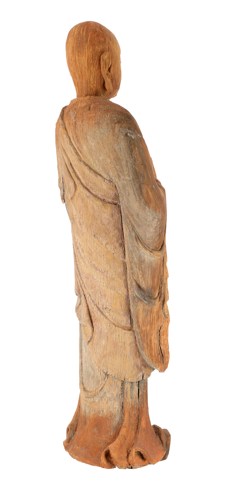 Scultura in stile Ming, recentemente ridipinta. Per fattura il lotto sembra databile al XX secolo, ma non è stata effettuata alcuna datazione dei materiali attraverso strumentazione scientifica.