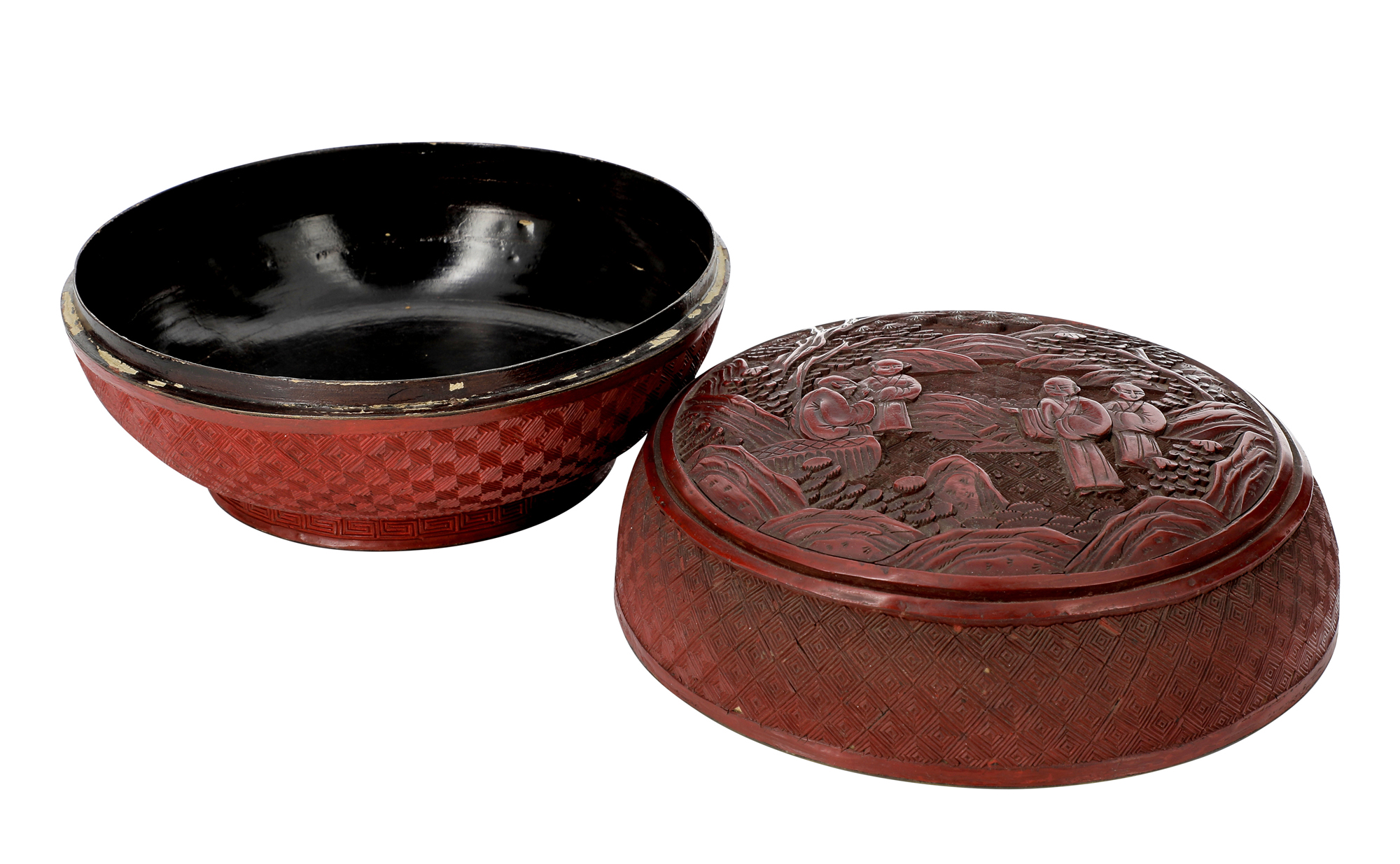 Cina. XIX secolo Scatola circolare con decoro di figure nel paesaggio