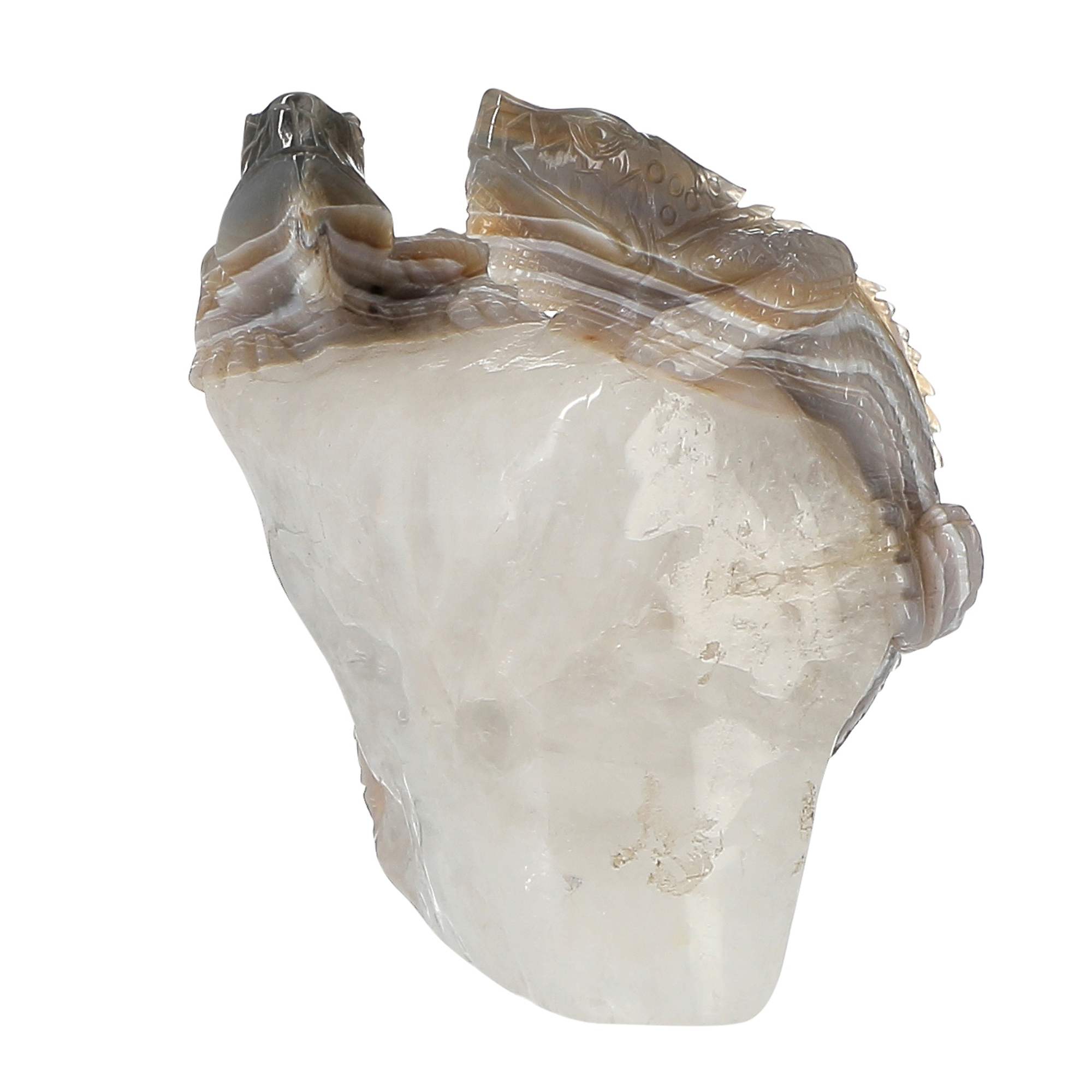 L’intagliatore, prendendo a pretesto un animale esotico rispetto alla fauna cinese, mostra la sua abilità nello sfruttare le caratteristiche naturali della pietra.