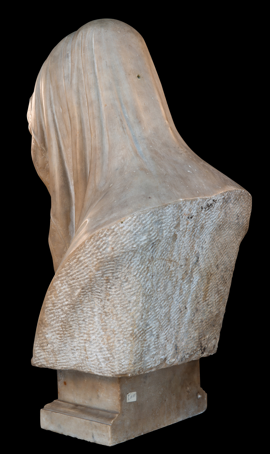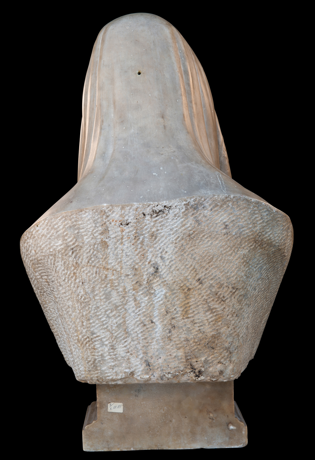 L'opera, proveniente da una collezione romana, soprattutto per la definizione del volto della Madonna appare assai vicina ai modi di Luigi Bienaimé, e potrebbe essere stata realizzata dalla sua bottega, a partire da una sua invenzione e forse con il suo intervento. La piena attribuzione al maestro appare difficile in ragione della qualità del panneggio, lontano dalla leggerezza di opere analoghe quali la donna a lutto nella tomba Bonaparte nella collegiata di San Giovanni e Sant'Andrea a Canino e la "Madonna come Signora del Dolore", già presso Brun Fine Art, Milano-Londra. Come suggerisce Afonso Panzetta, confermando la attribuzione all'ambito di Bienaimé, la scultura era forse completata da una aureola in bronzo, poiché ancora si vede il foro per fissarla dietro la testa (comunicazione del 23 novembre 2020).