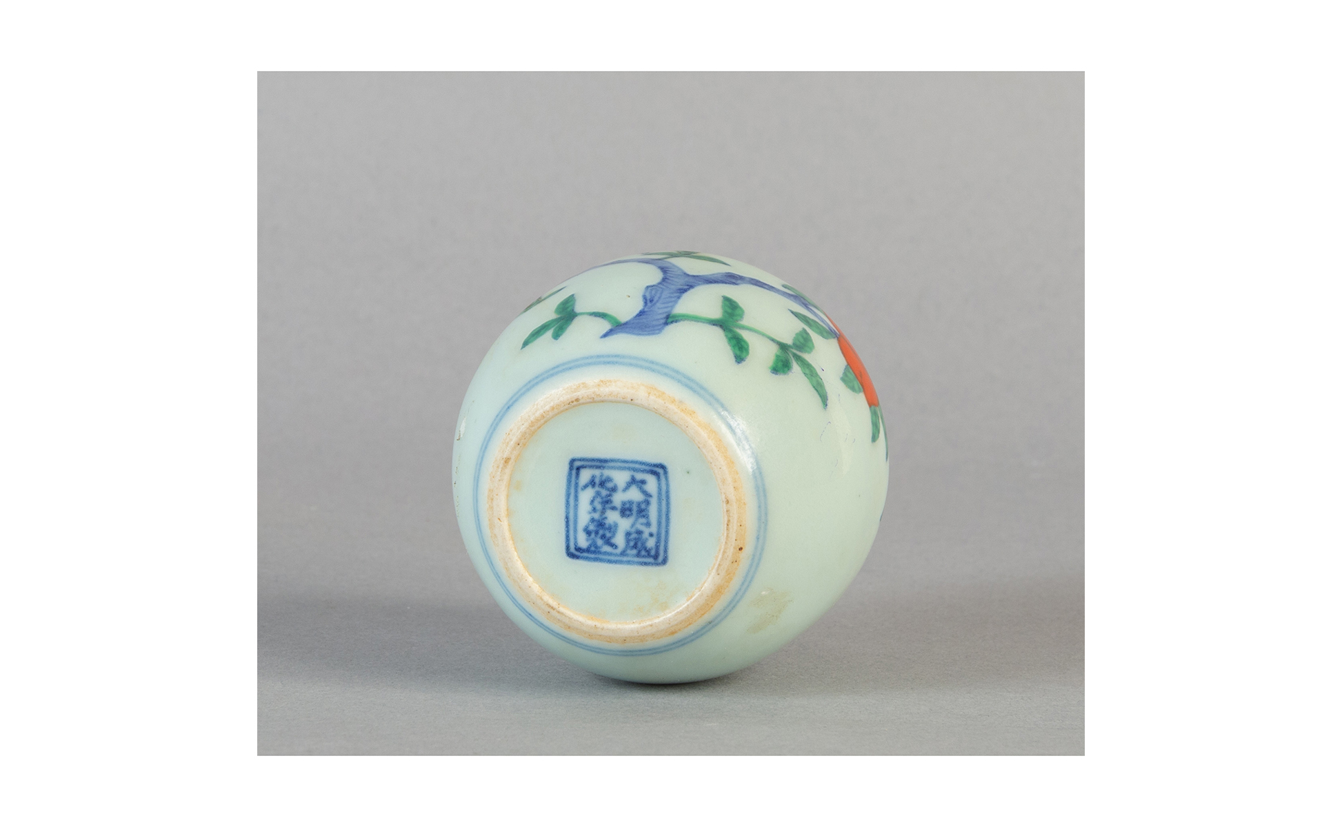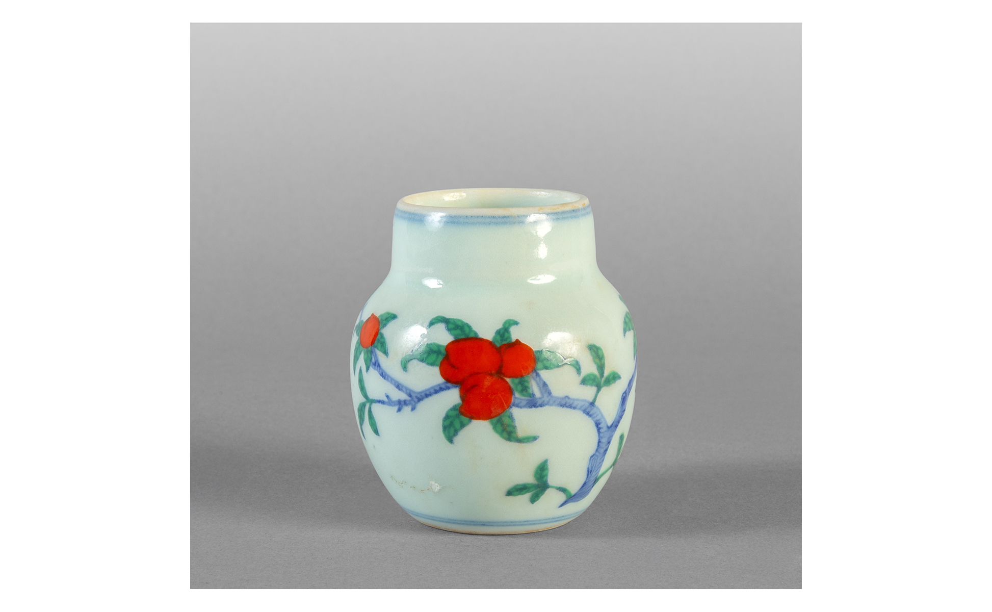 Piccolo vaso a decoro ducai in porcellana decorato con albero di pesche marcato alla base Cina periodo della Repubblica